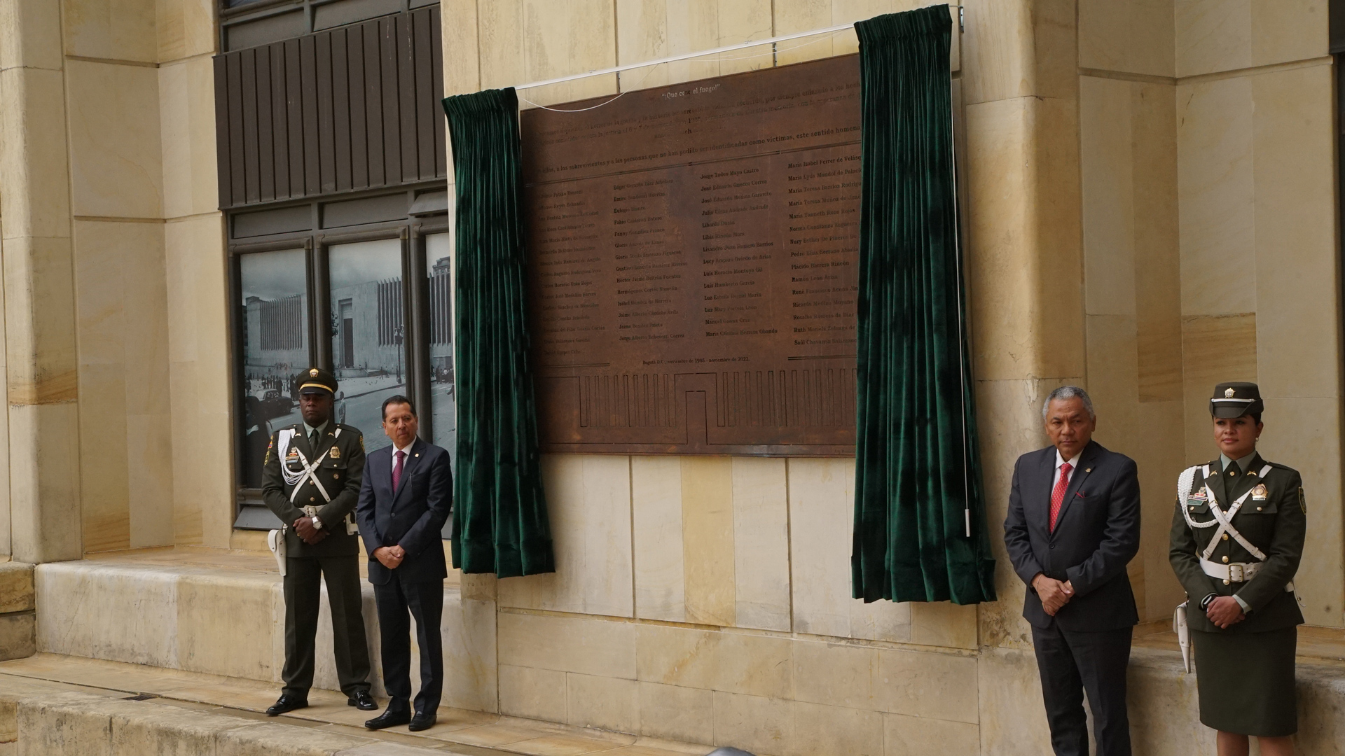 09:00 a.m., sesión de la Sala Plena de la Corte Suprema de Justicia se llevó a cabo la firma de la resolución mediante la cual se declaró como Bien de Interés Cultural del ámbito Nacional, el Cristo del Palacio de Justicia, que reposa en este recinto, recuperado después del holocausto del 6 y 7 de noviembre de 1985.