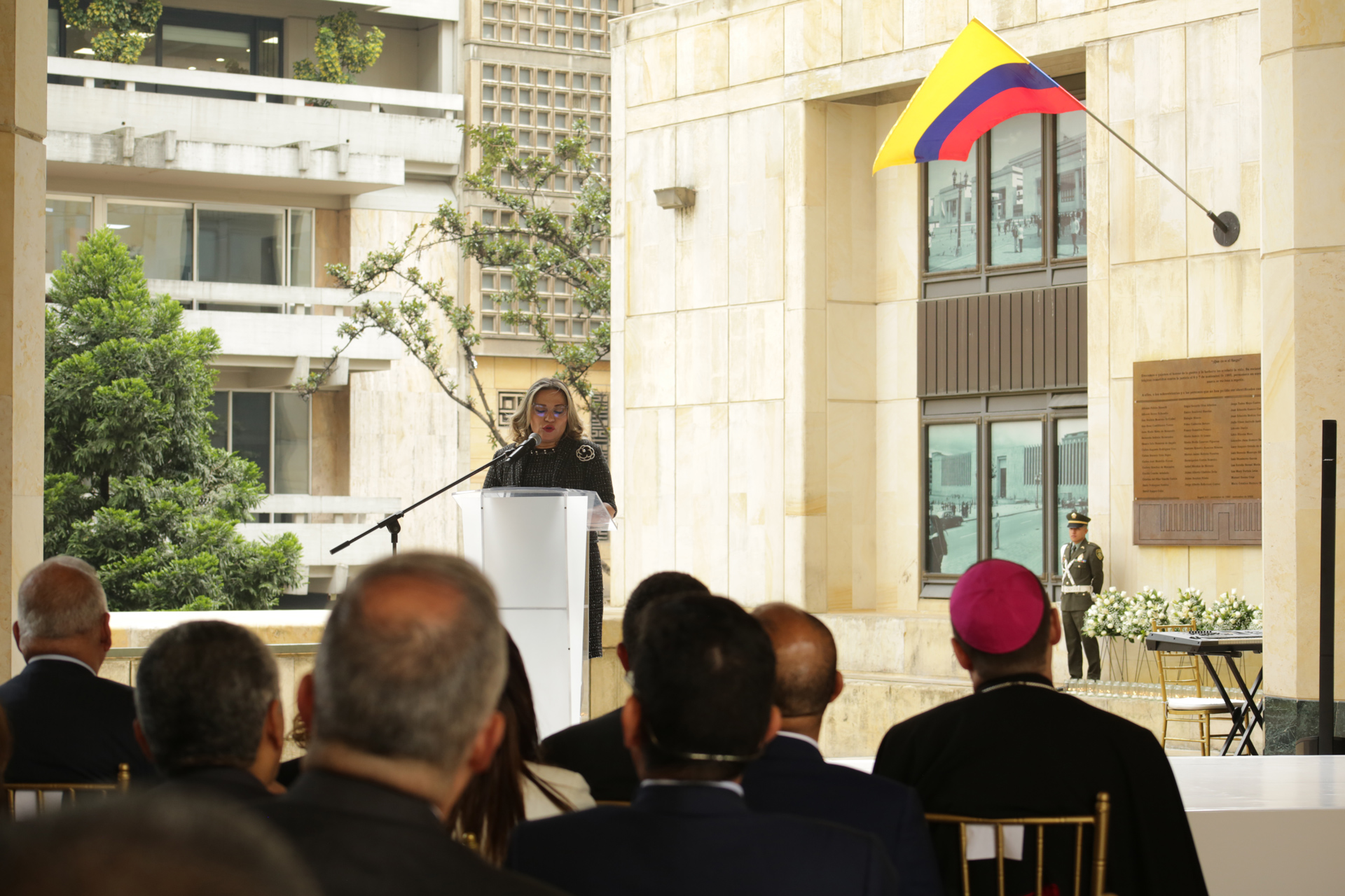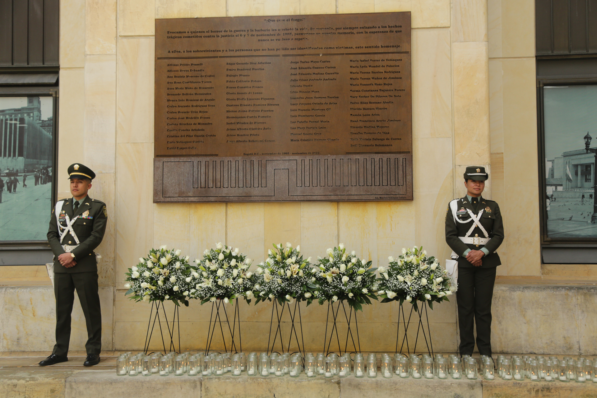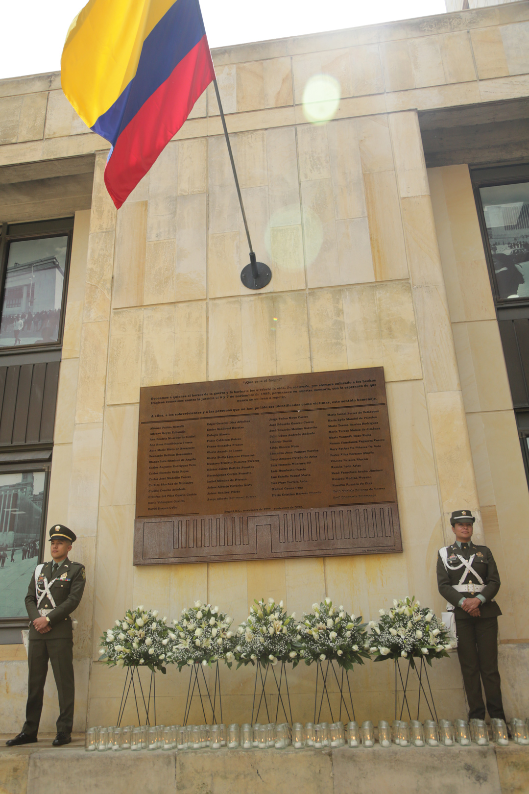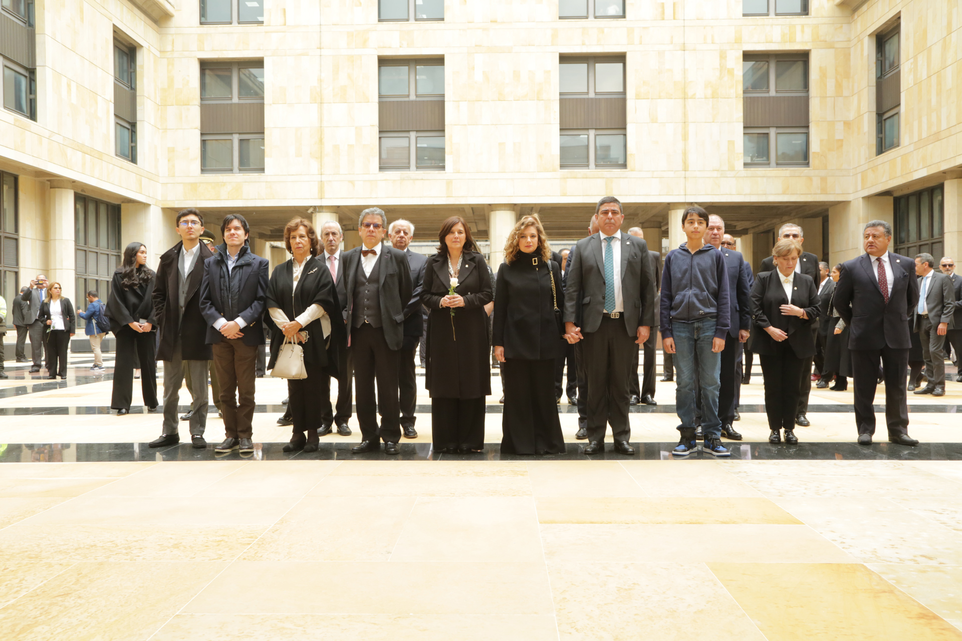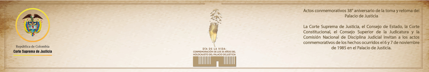 - 11:30 a.m. Eucaristía oficiada por el Nuncio Apostólico en Colombia, Excelentísimo Monseñor Paolo Rudelli, copresidida por el Arzobispo de Bogotá y Primado de Colombia, Excelentísimo Monseñor Luis José Rueda Aparicio. En presencia de familiares de las víctimas, magistrados y exmagistrados de las Altas Cortes,