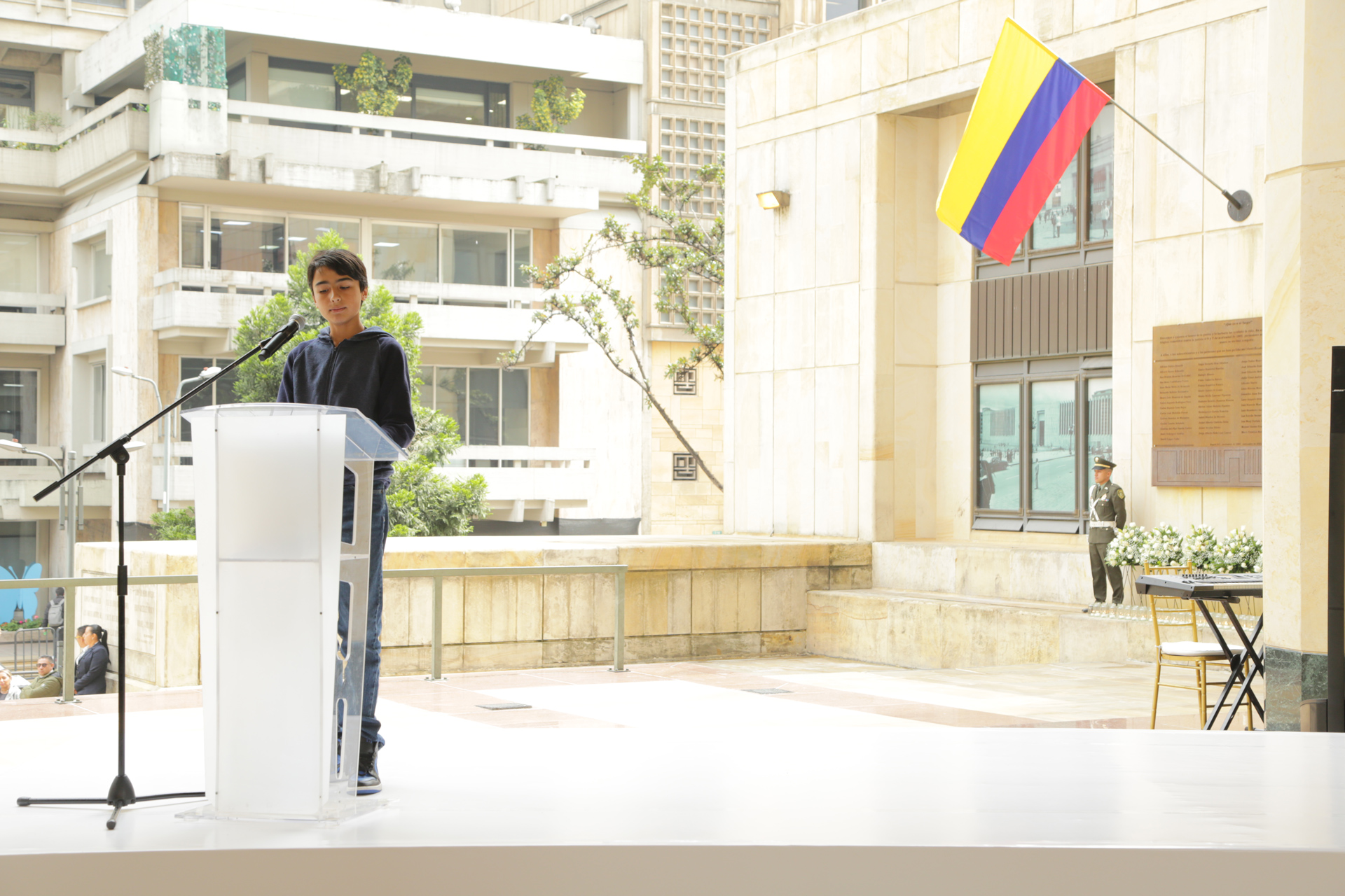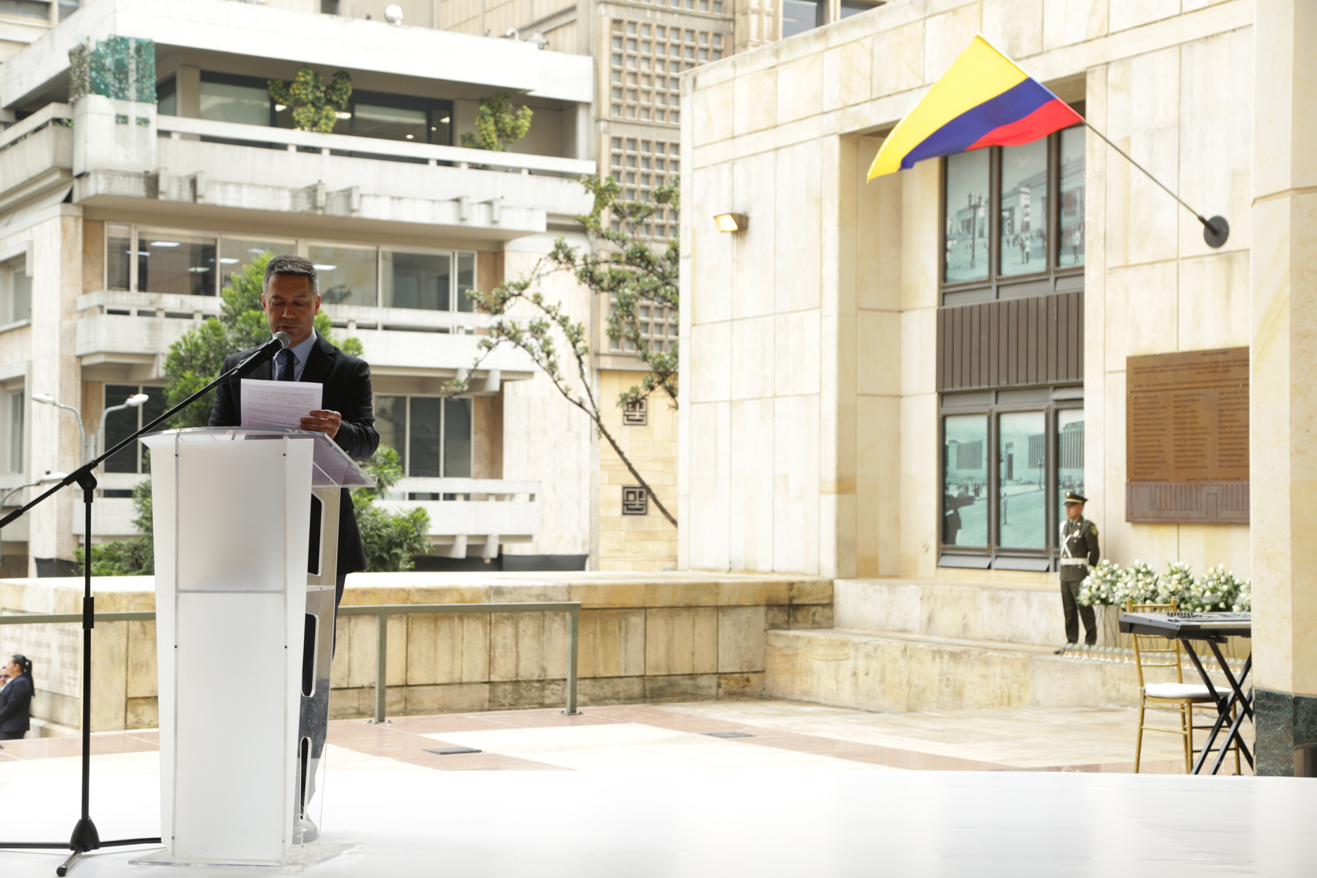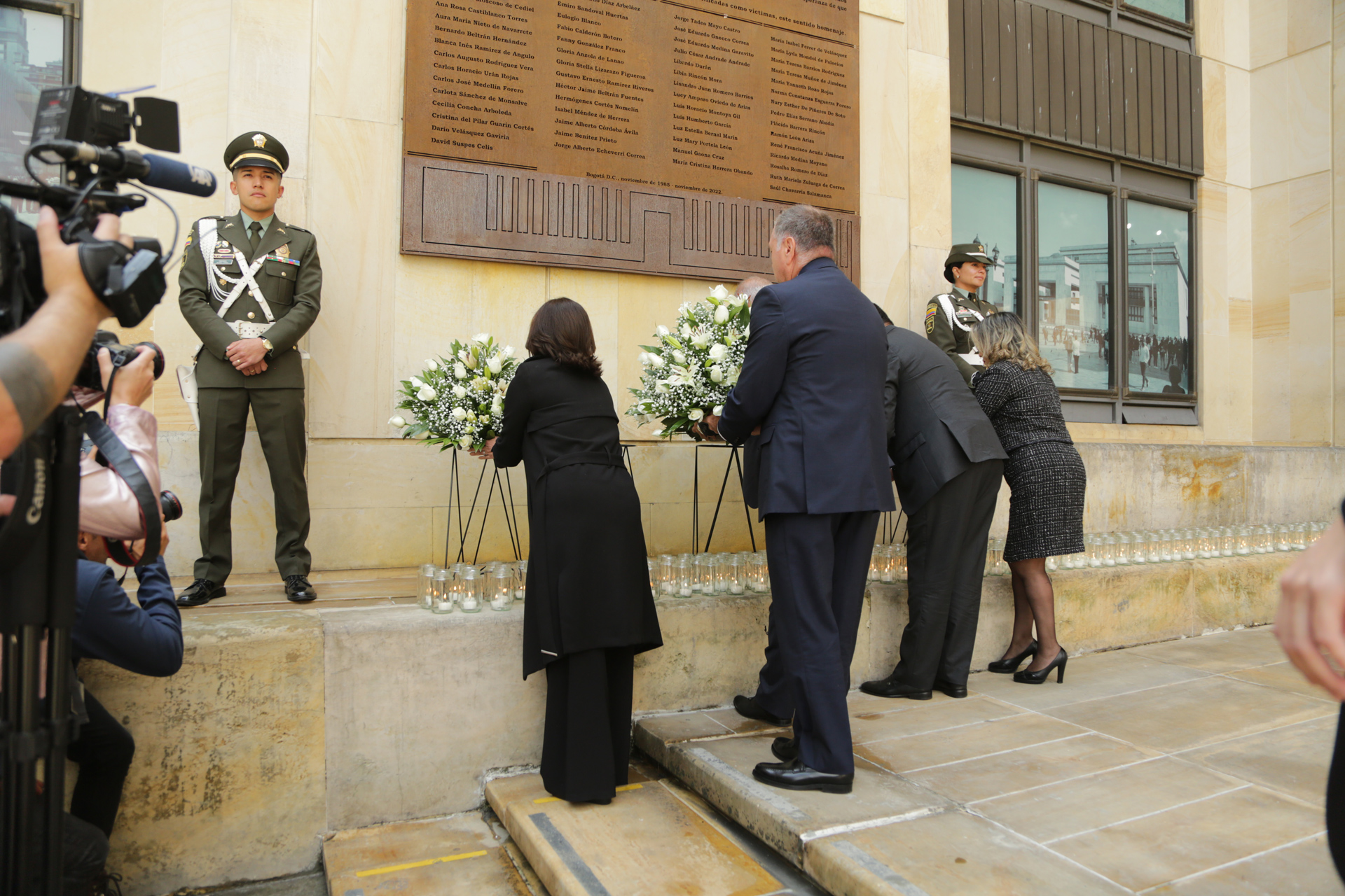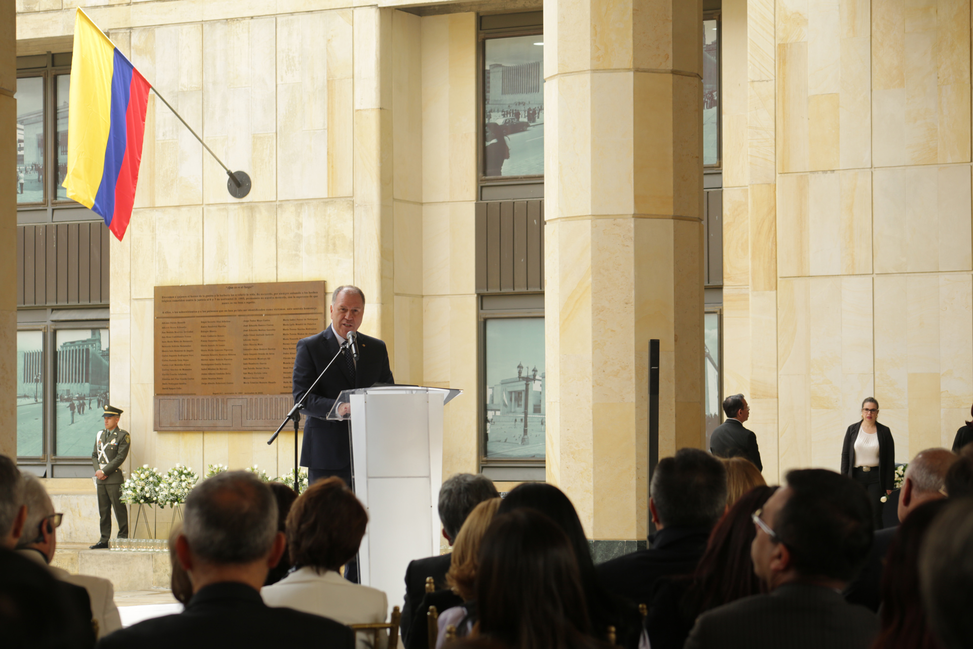 - 11:30 a.m. Eucaristía oficiada por el Nuncio Apostólico en Colombia, Excelentísimo Monseñor Paolo Rudelli, copresidida por el Arzobispo de Bogotá y Primado de Colombia, Excelentísimo Monseñor Luis José Rueda Aparicio. En presencia de familiares de las víctimas, magistrados y exmagistrados de las Altas Cortes,