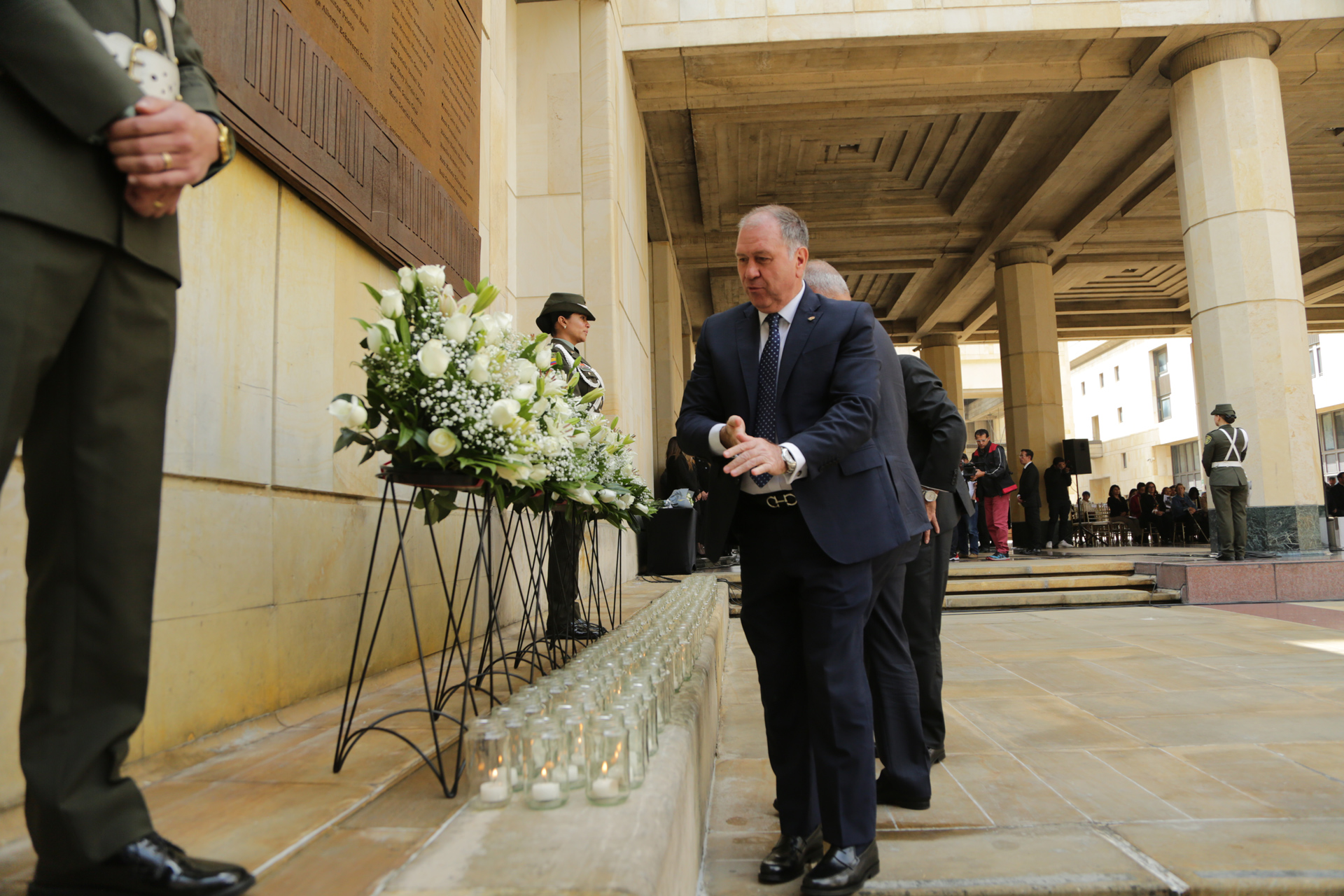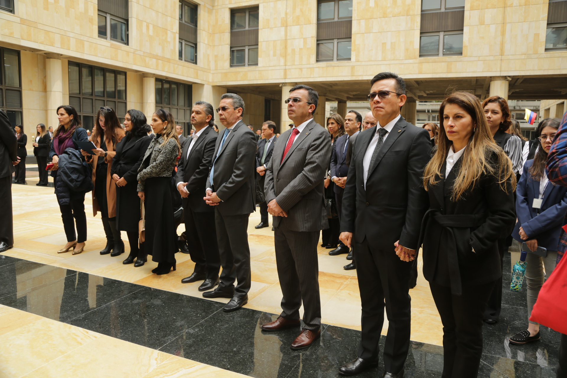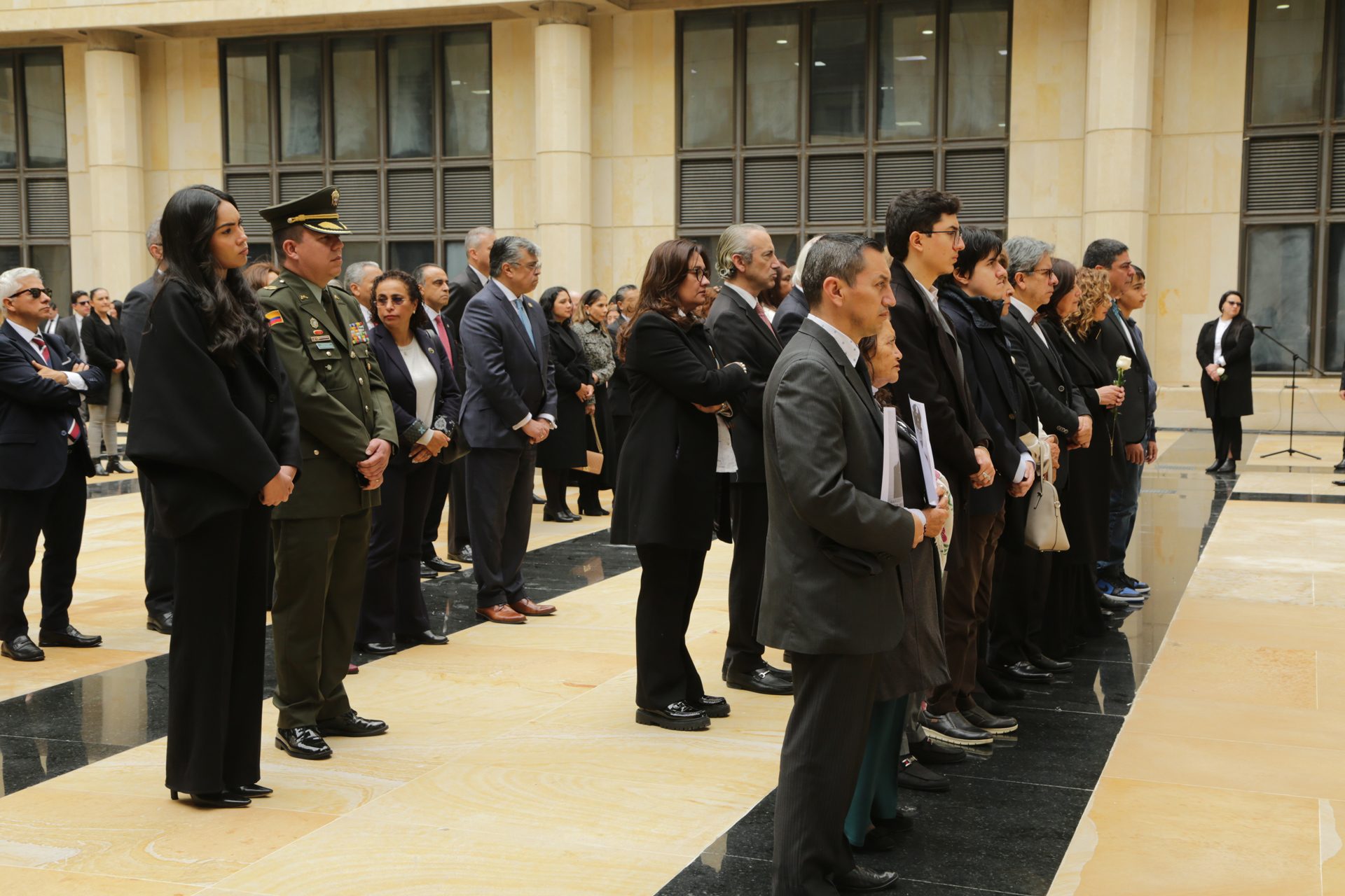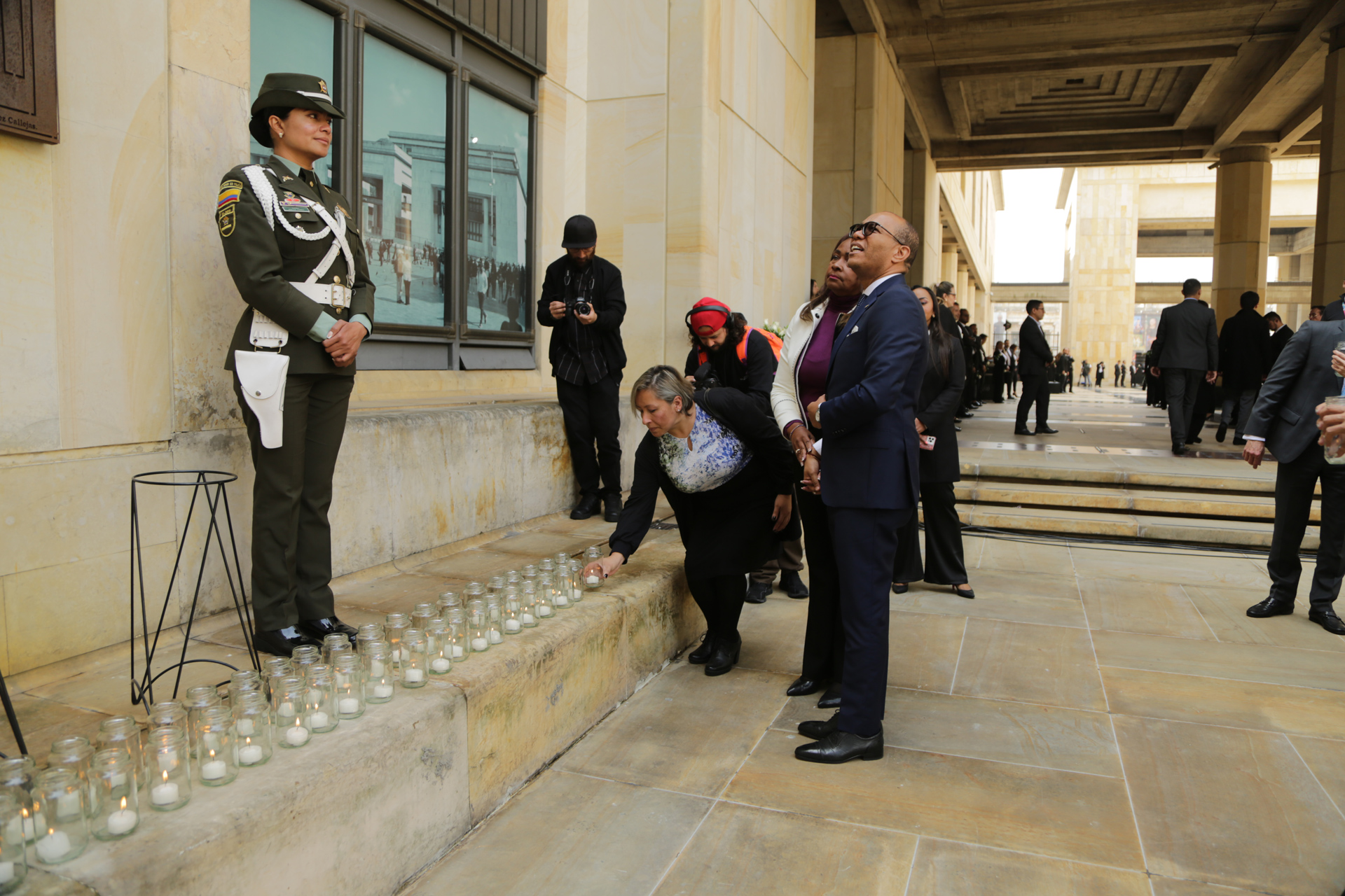 - La calle de honor está integrada por funcionarios y empleados de las altas cortes y miembros de la policía nacional de Colombia que se unen en a este solemne evento.