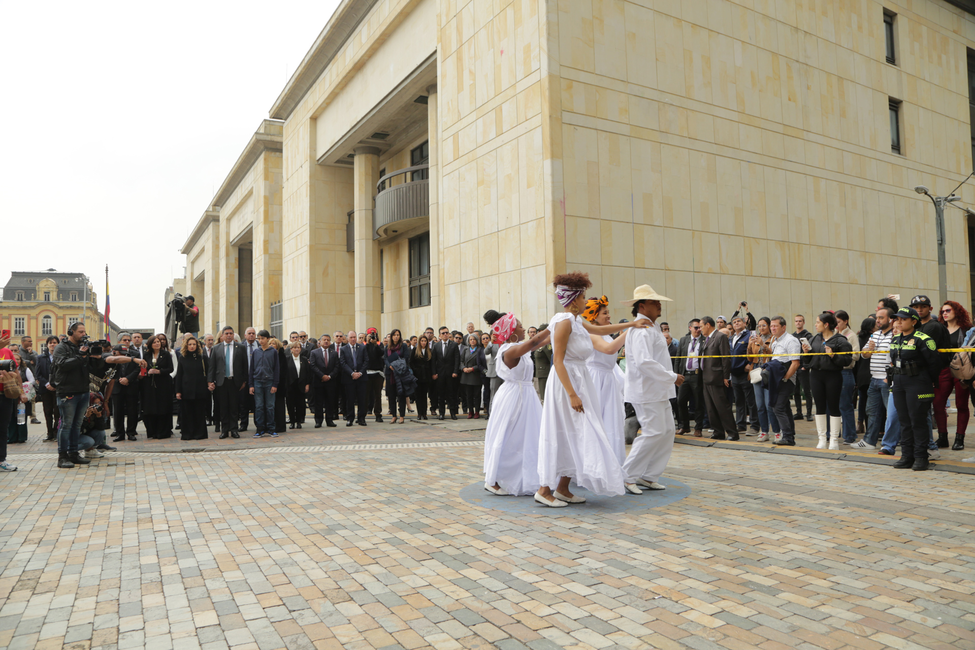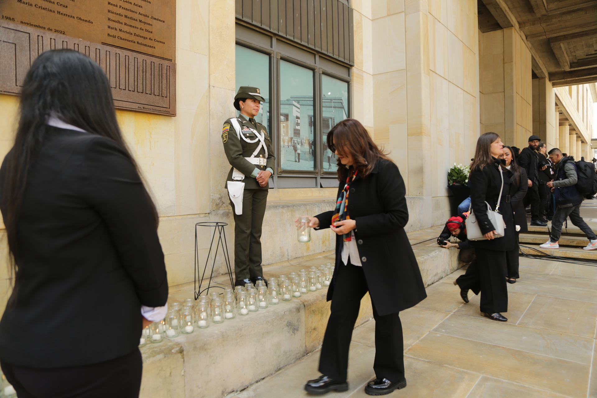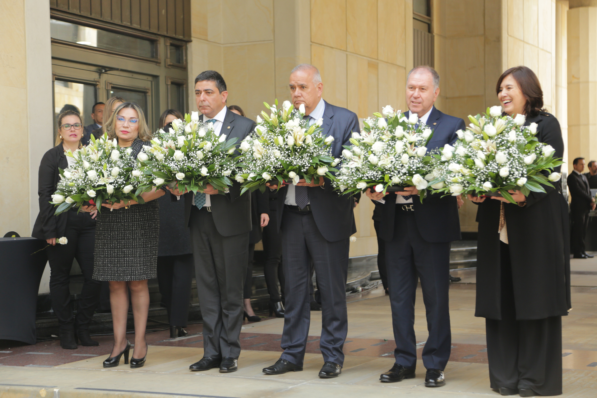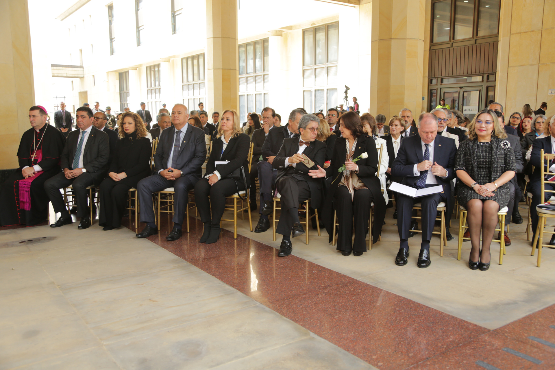 - La calle de honor está integrada por funcionarios y empleados de las altas cortes y miembros de la policía nacional de Colombia que se unen en a este solemne evento.