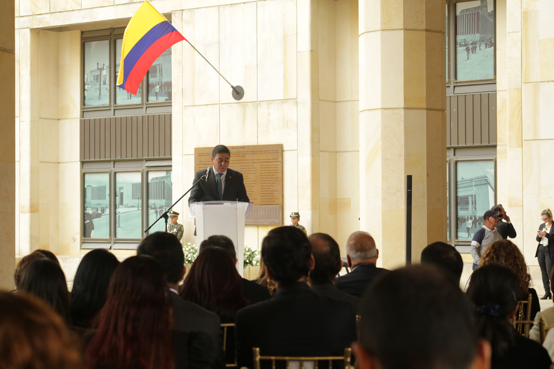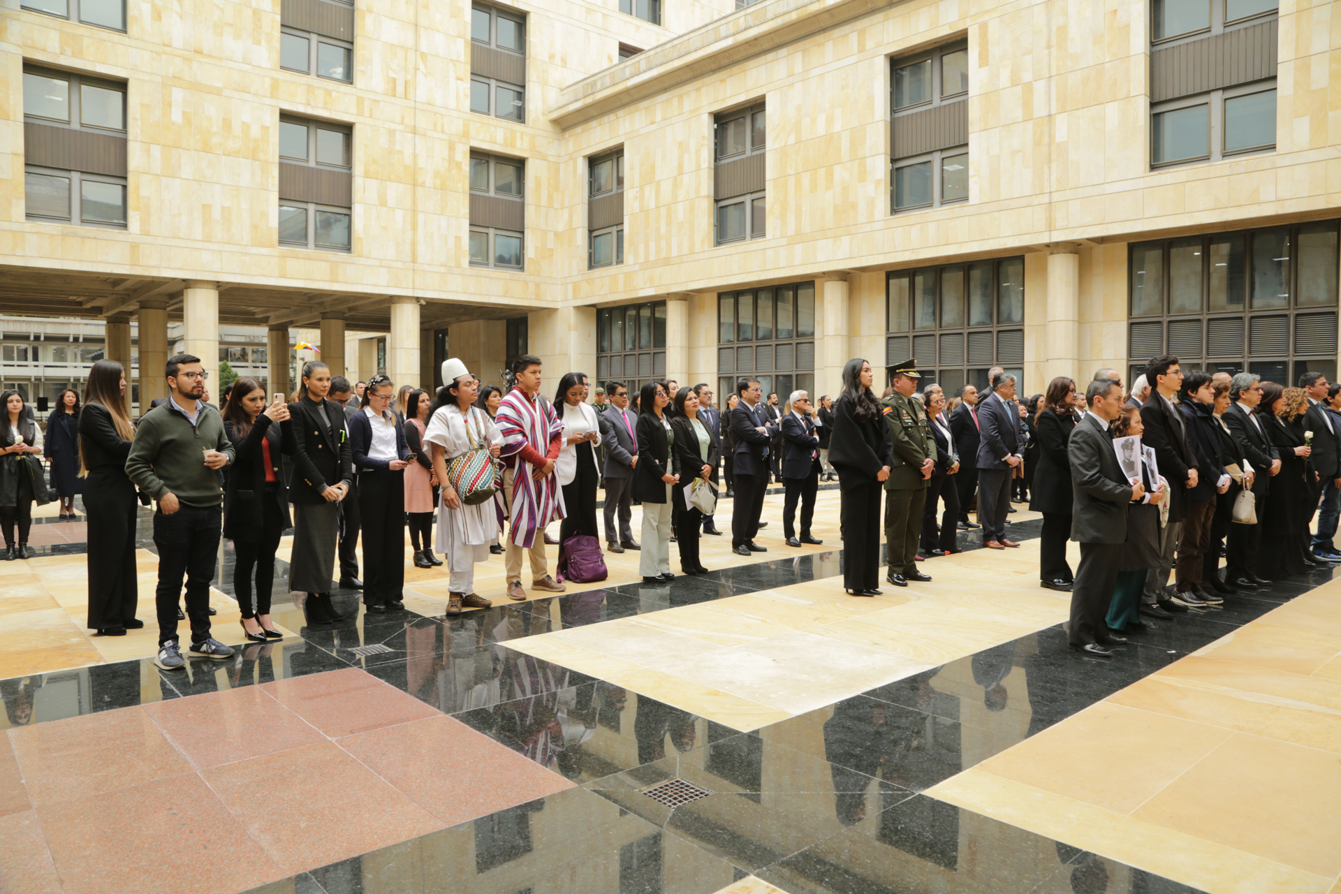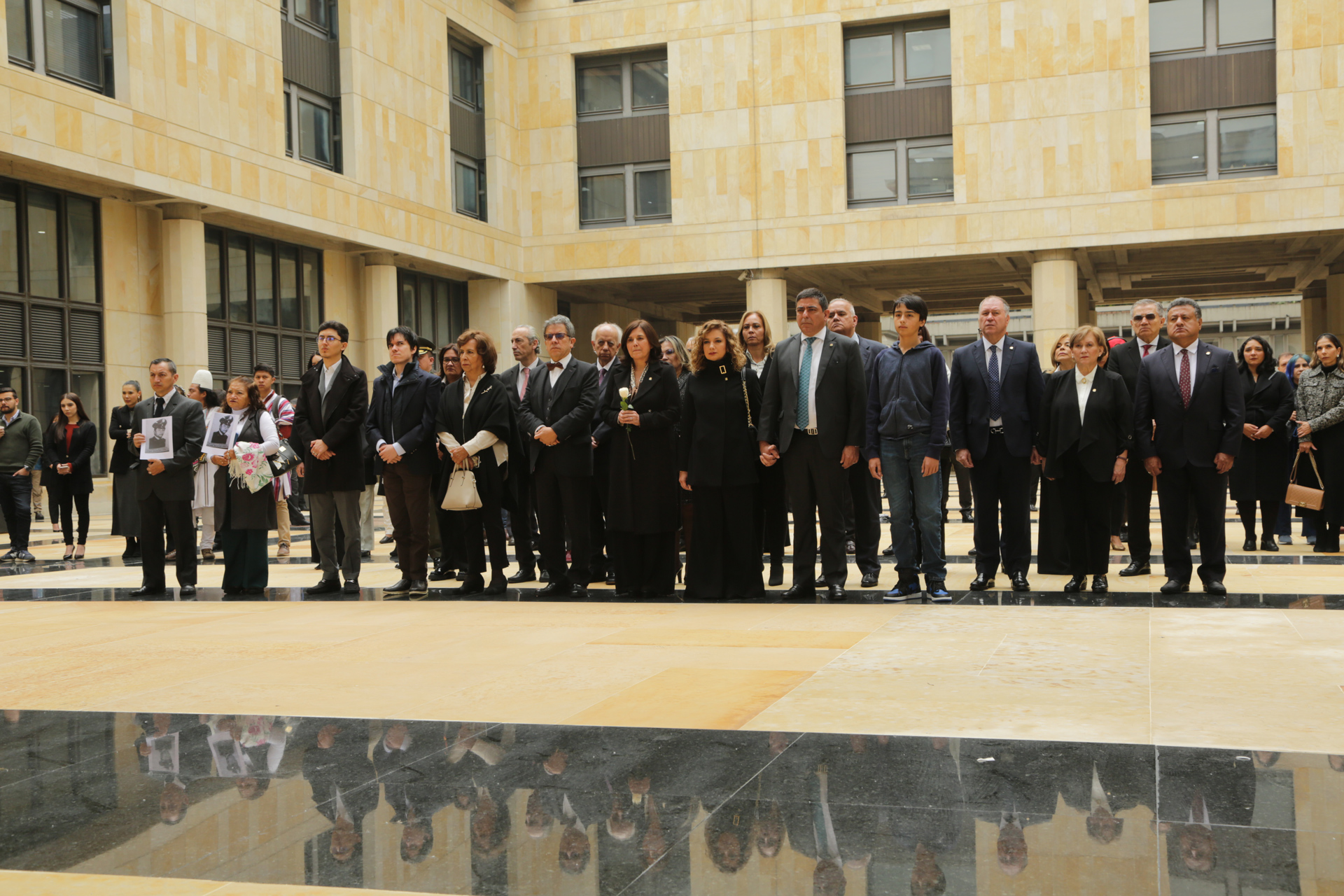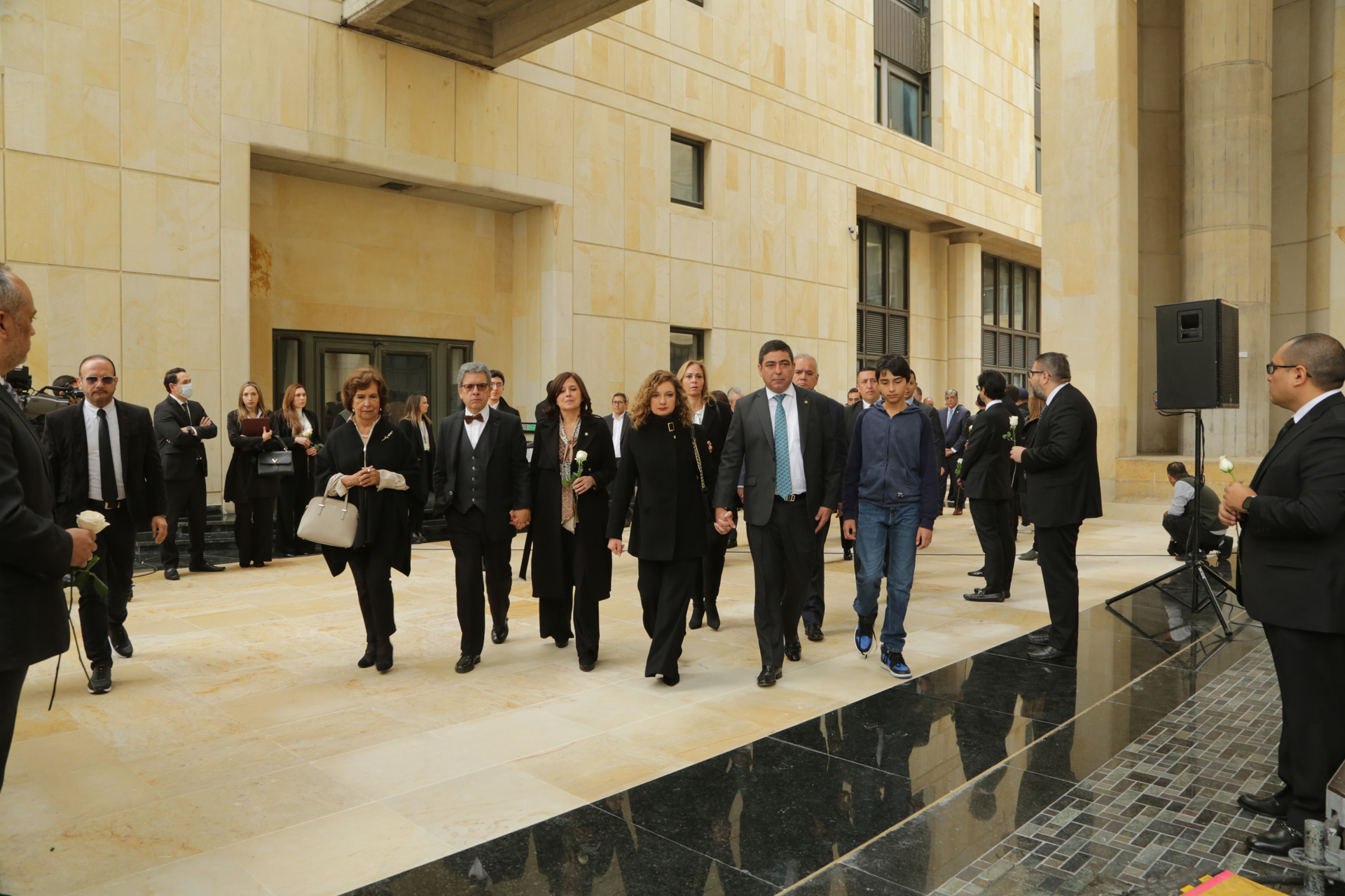 • Recorrido de los asistentes desde la Plazoleta del Palacio de Justicia con dirección a la Catedral Primada de Colombia, encabezada por los presidentes de las altas cortes, viceministro de Cultura y representante de los familiares– y demás participantes.