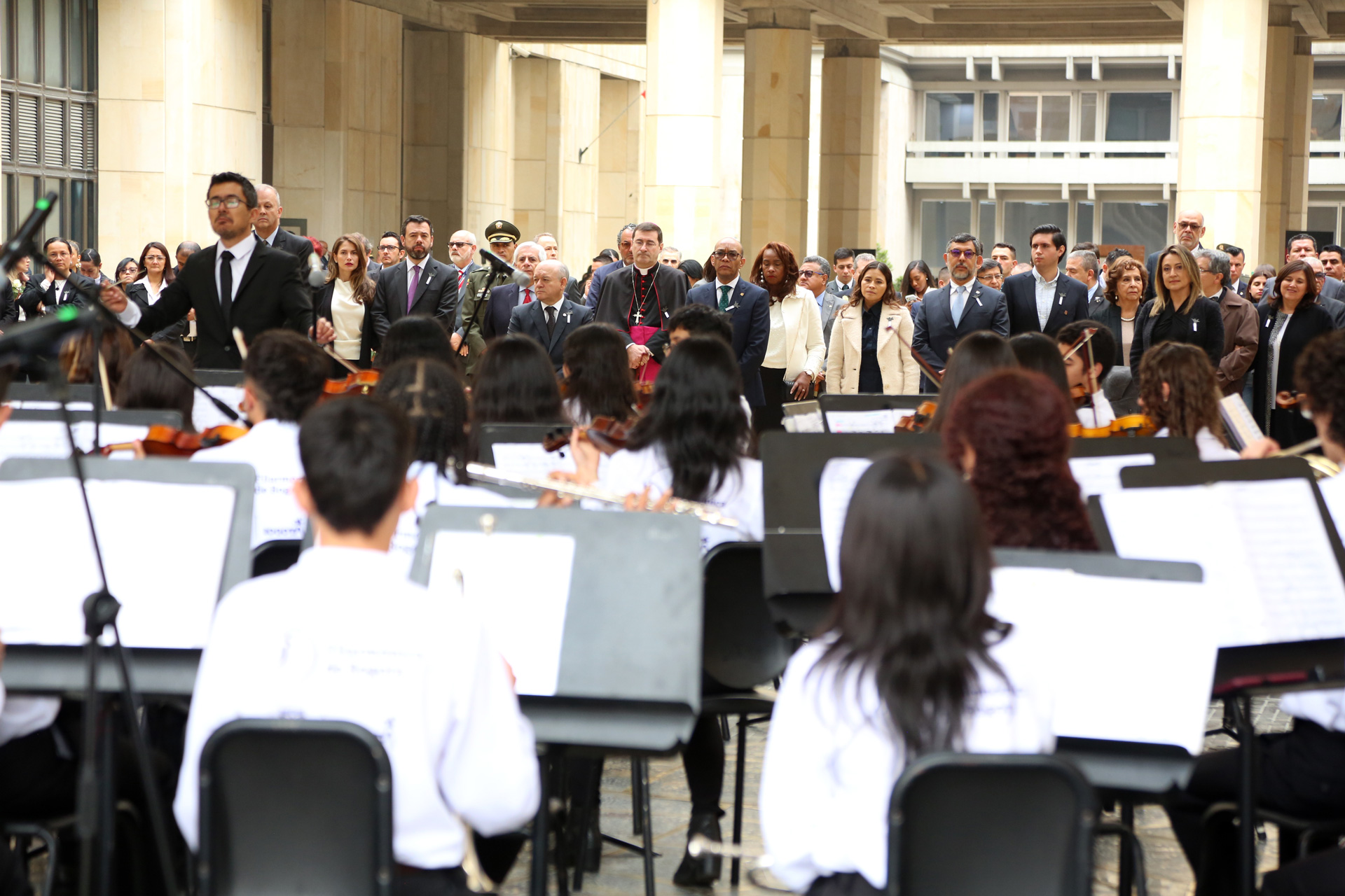 - Primera parada – Arco de la Plazoleta: Interpretación del Intermezzo No. 2 “Lejano Azul” del maestro Luis A. Calvo, a cargo de la Orquesta Filarmónica Prejuvenil de Bogotá.
