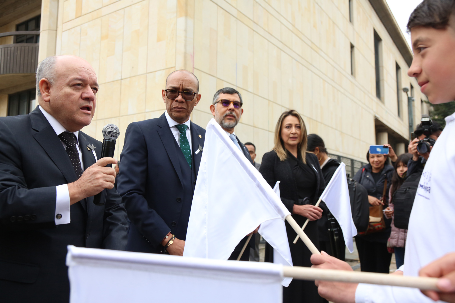 - Segunda Parada – Museo Casa del Florero: Espacio para mensajes de justicia entre las actuales y las nuevas generaciones. Se realizaró un intercambio de mensajes entre los presidentes de las Altas Cortes y 5 niños, reafirmando el compromiso con la memoria y la dignidad. Adicionalmente a los mensajes, los 5 niños entregaron a los presidentes una bandera blanca y los presidentes a los niños “La grulla”.