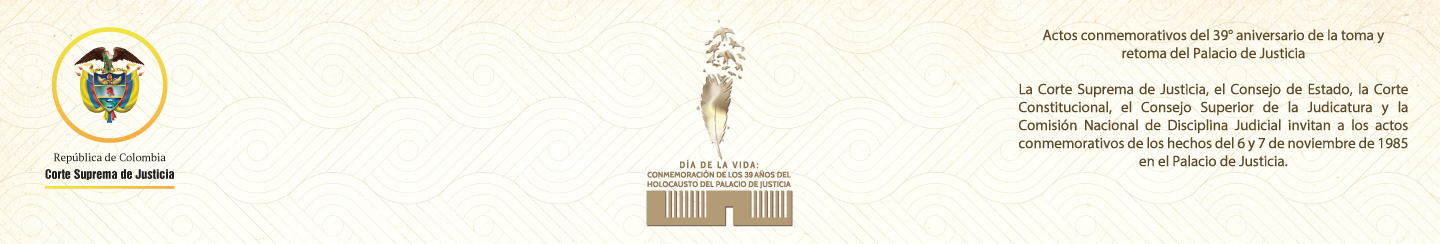 Actos conmemorativos 39º aniversario de los hechos del Palacio de Justicia. El evento conmemorativo tuvo como eje central la consigna de “fortalecer la memoria histórica y preservar la dignidad de la justicia”, con el propósito de rendir homenaje a las víctimas de los hechos ocurridos el 6 y 7 de noviembre de 1985 en el Palacio de Justicia.