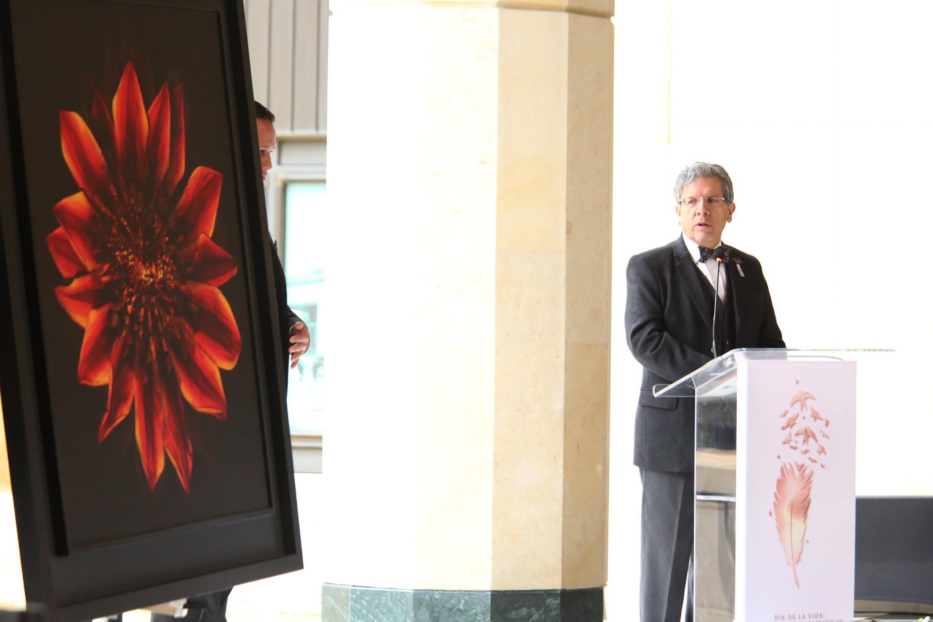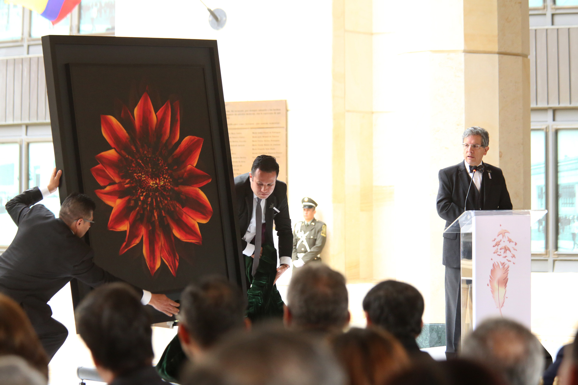 Esta obra ha sido donada por el Dr. Jorge Alejandro Medellín, hijo del magistrado Carlos Medellín, quien perdió la vida en los trágicos hechos del Palacio de Justicia Poeta. El doctor Alejando Medellín es compositor y educador de una destacada familia en las áreas pedagógica, artística y jurídica. Autor de seis libros de poesía, dos álbumes de música colombiana y el Diccionario de Colombia (junto a su esposa, Diana Fajardo). En años recientes, ha explorado la fotografía expandida digital, integrando imágenes con su poesía para completar su proceso creativo.