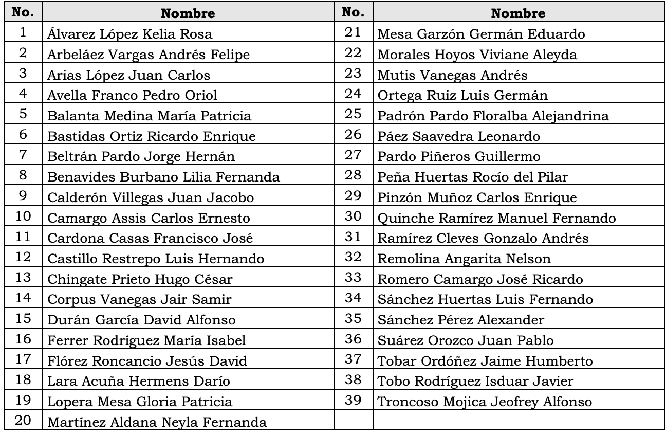 Bogotá D. C., miércoles 16 de julio de 2025. En el marco de la Convocatoria Pública 02 de 2025 para conformar la terna de la que el Senado de la República elegirá al nuevo (a) magistrado (a) de la Corte Constitucional, fueron admitidas 39 personas de una lista de 68 que se inscribieron inicialmente.