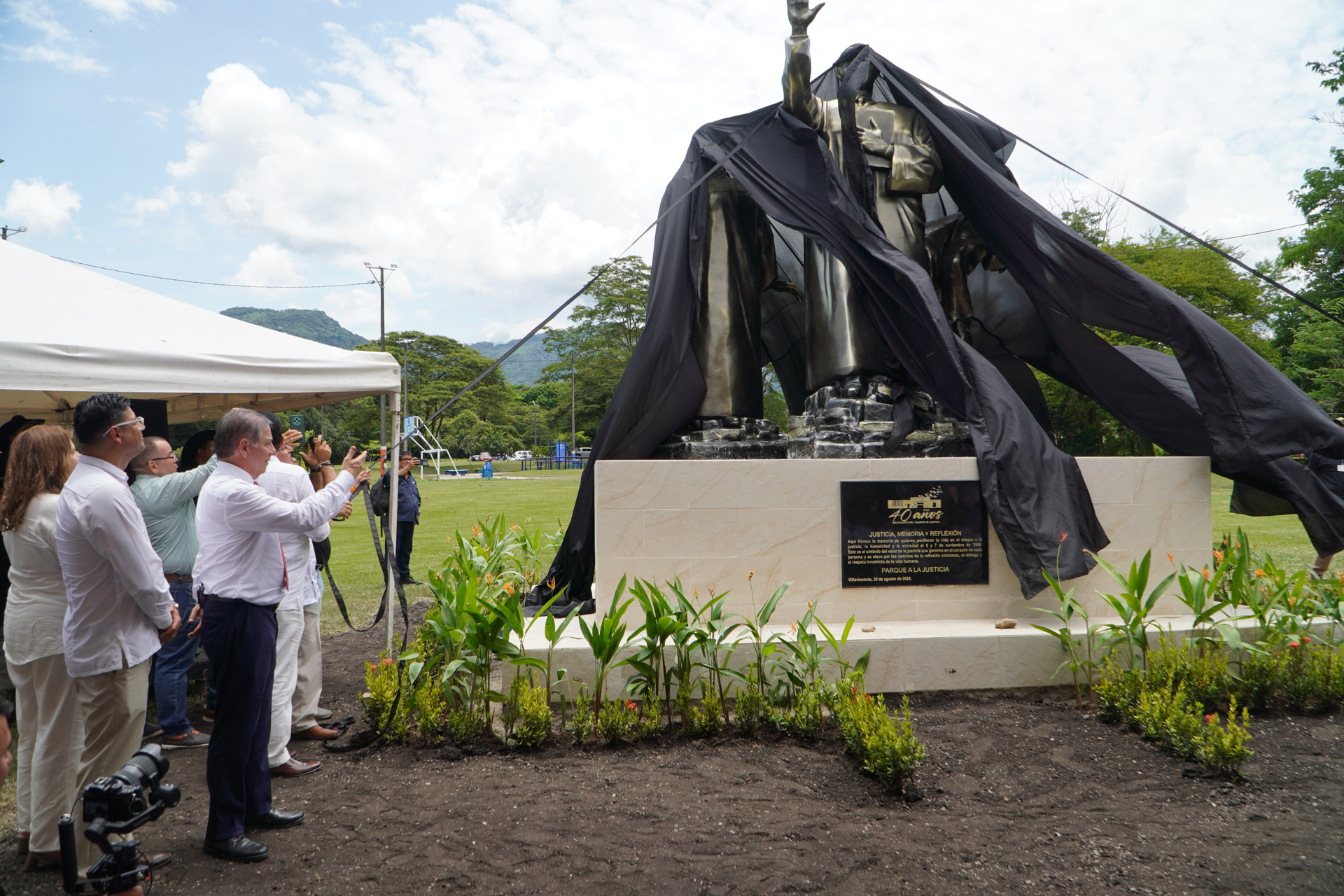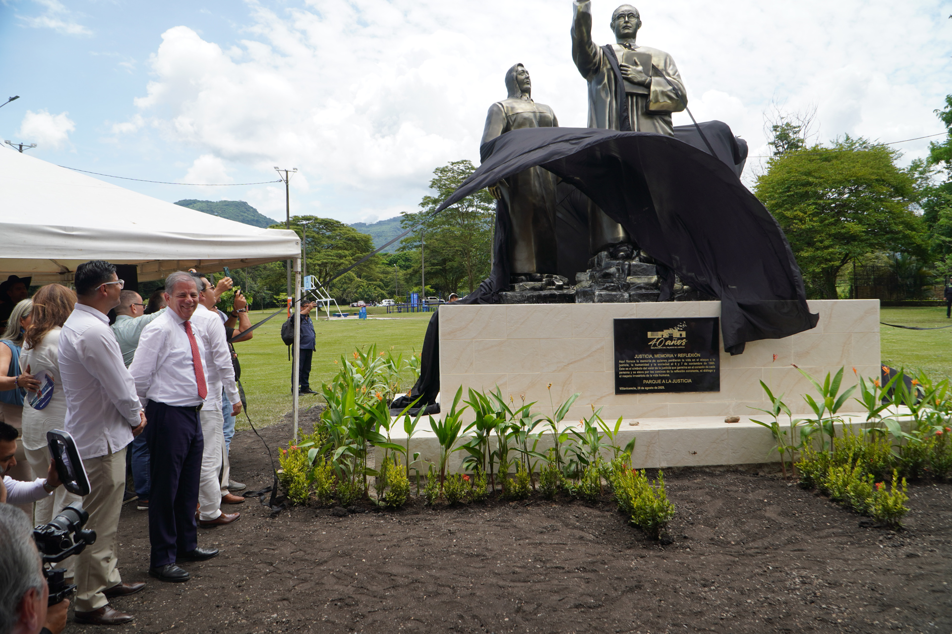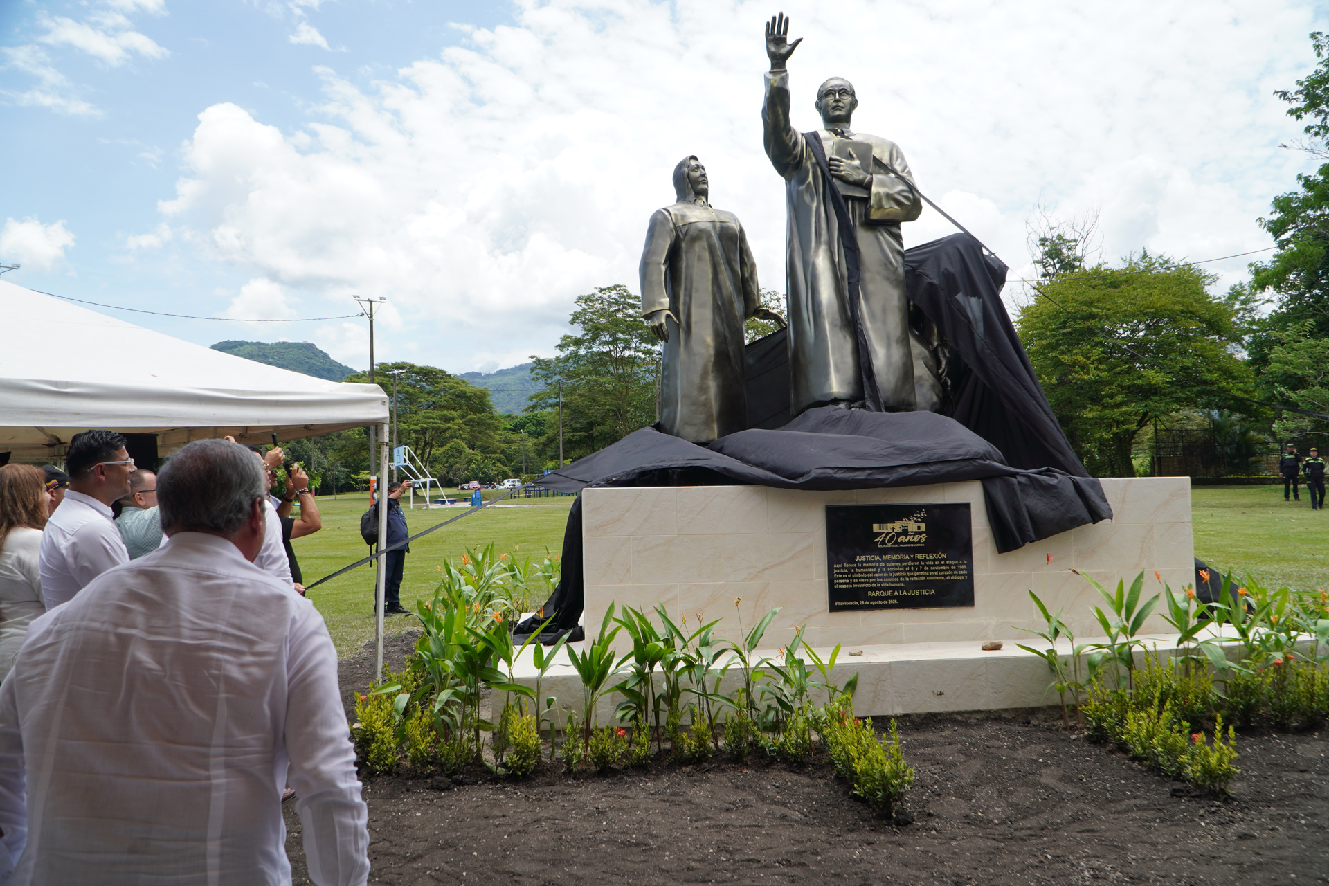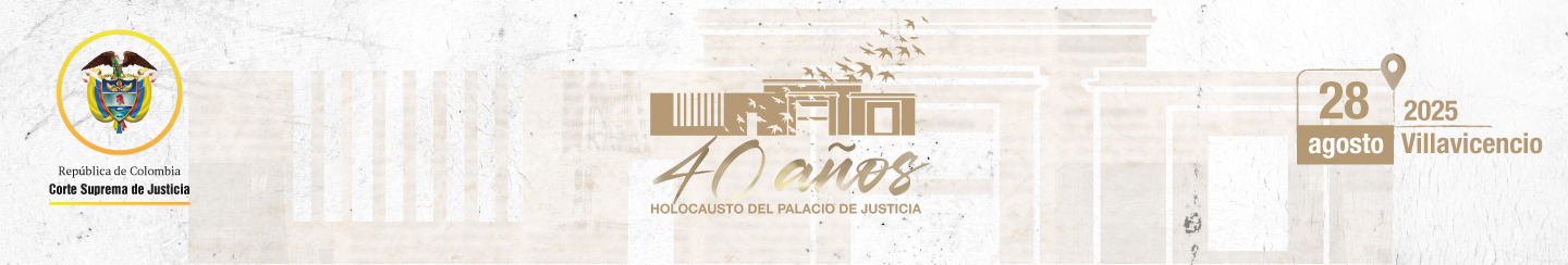 En el marco del XXXVIII Encuentro de la Jurisdicción Ordinaria en Villavicencio “Justicia somos todos”, se realizó la develación de la obra del artista plástico Marlio Ninco Medina, Memoria, justicia y reflexión, compuesta por tres figuras que representan a las víctimas, una de las cuales hace la señal de basta. La Corte Suprema de Justicia en pleno, encabezada por el presidente Octavio Augusto Tejeiro Duque, asistió a la develación de esta escultura realizada en honor a magistrados y funcionarios judiciales que murieron en los hechos del Palacio de Justicia en noviembre de 1985.