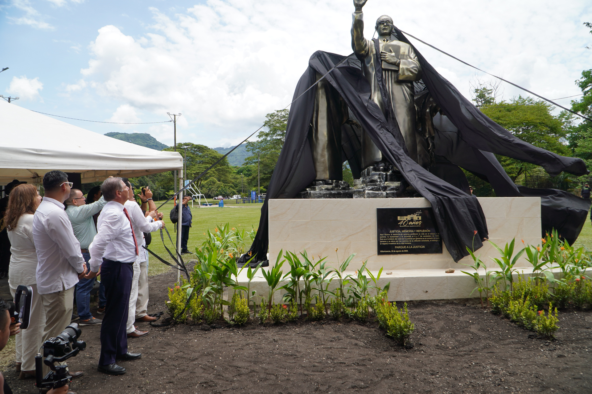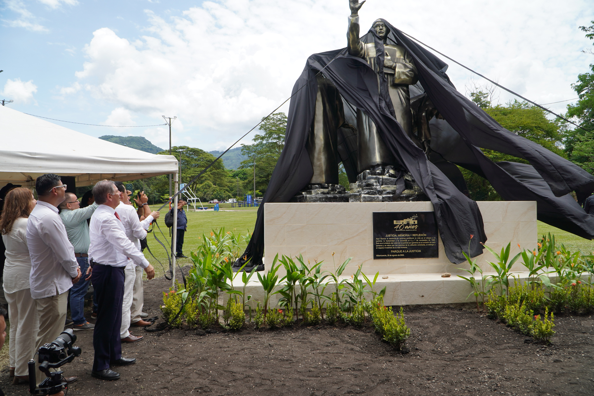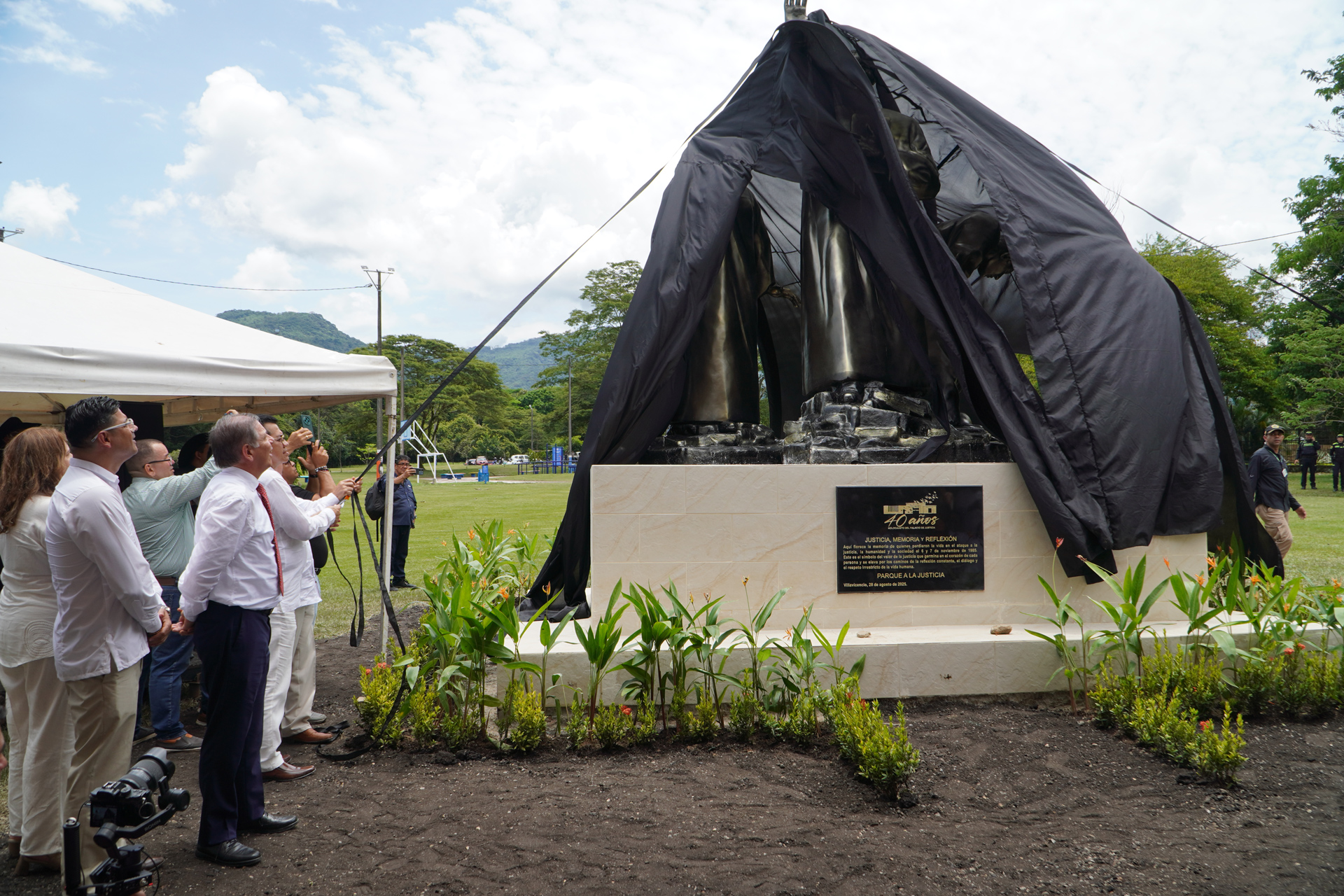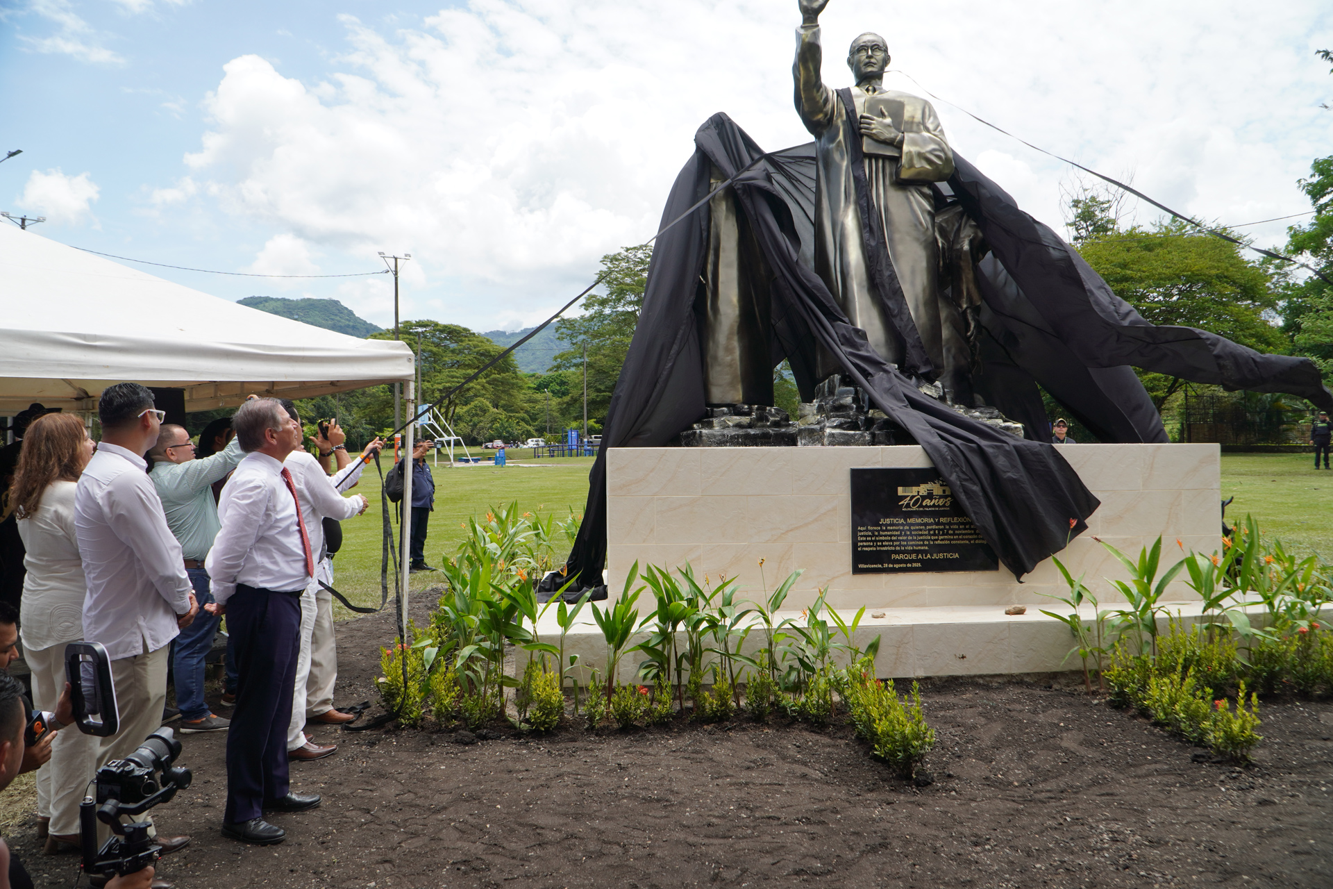 En el marco del XXXVIII Encuentro de la Jurisdicción Ordinaria en Villavicencio “Justicia somos todos”, se realizó la develación de la obra del artista plástico Marlio Ninco Medina, Memoria, justicia y reflexión, compuesta por tres figuras que representan a las víctimas, una de las cuales hace la señal de basta. La Corte Suprema de Justicia en pleno, encabezada por el presidente Octavio Augusto Tejeiro Duque, asistió a la develación de esta escultura realizada en honor a magistrados y funcionarios judiciales que murieron en los hechos del Palacio de Justicia en noviembre de 1985.