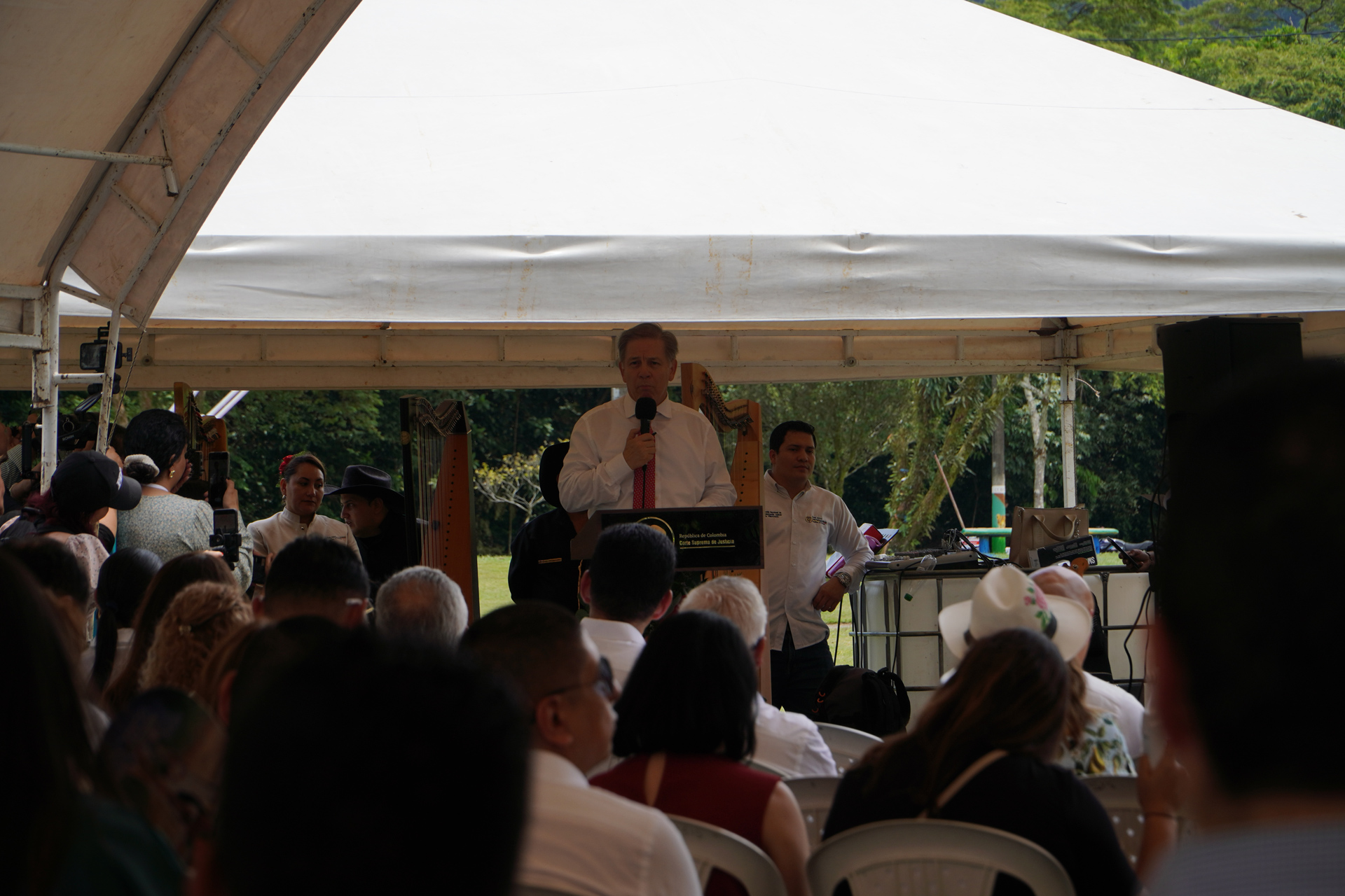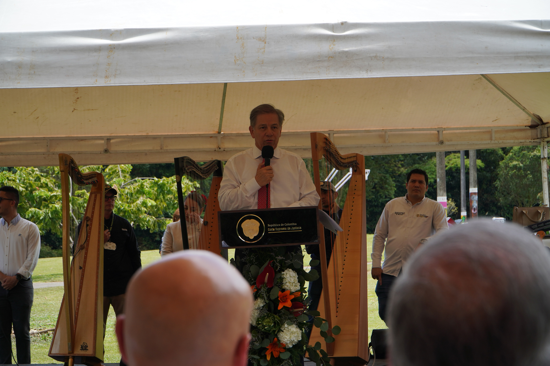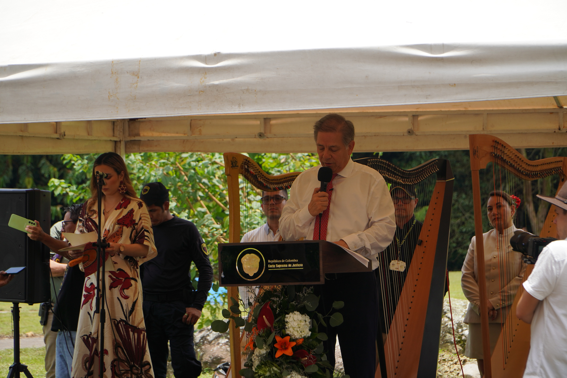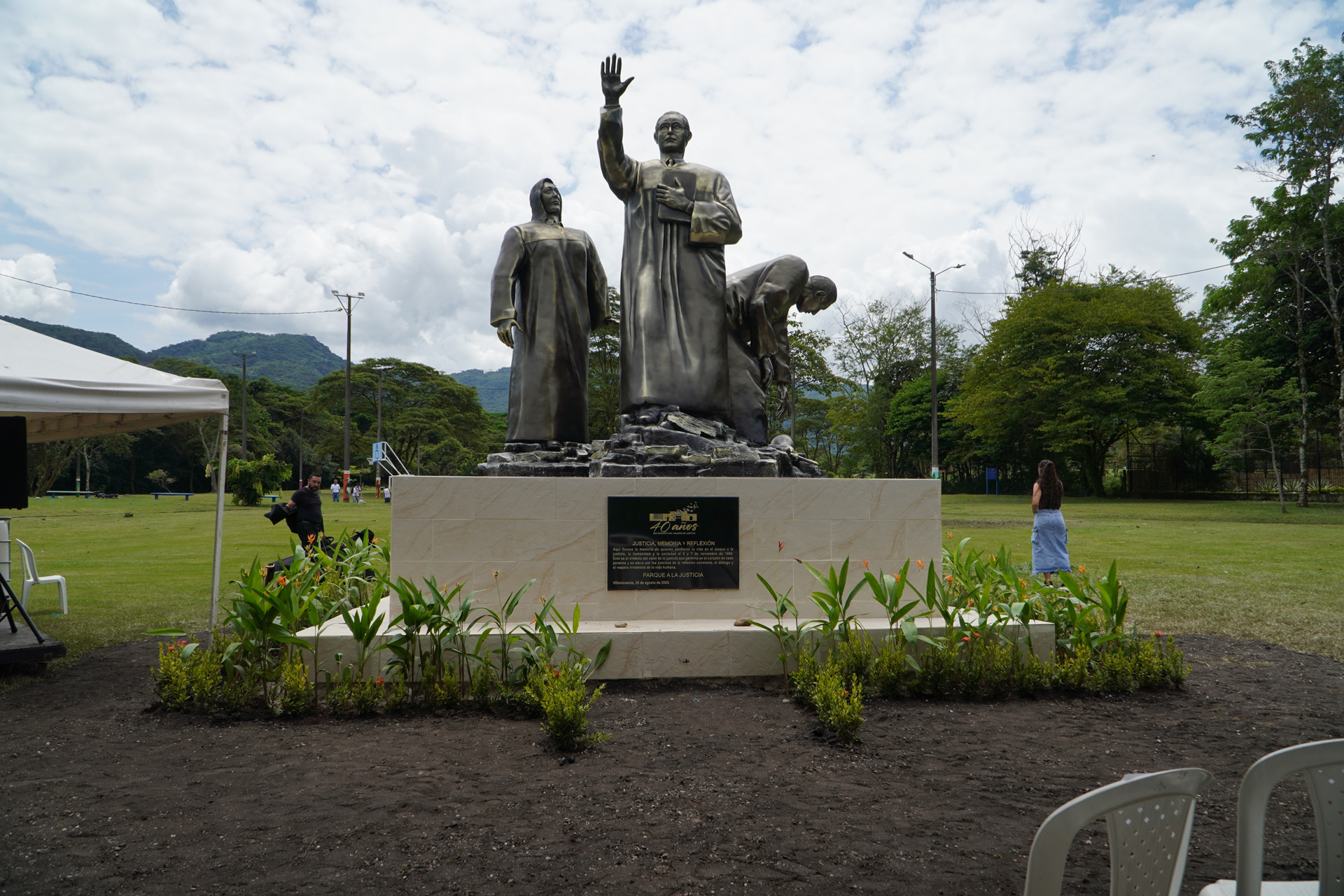 En el marco del XXXVIII Encuentro de la Jurisdicción Ordinaria en Villavicencio “Justicia somos todos”, se realizó la develación de la obra del artista plástico Marlio Ninco Medina, Memoria, justicia y reflexión, compuesta por tres figuras que representan a las víctimas, una de las cuales hace la señal de basta. La Corte Suprema de Justicia en pleno, encabezada por el presidente Octavio Augusto Tejeiro Duque, asistió a la develación de esta escultura realizada en honor a magistrados y funcionarios judiciales que murieron en los hechos del Palacio de Justicia en noviembre de 1985.