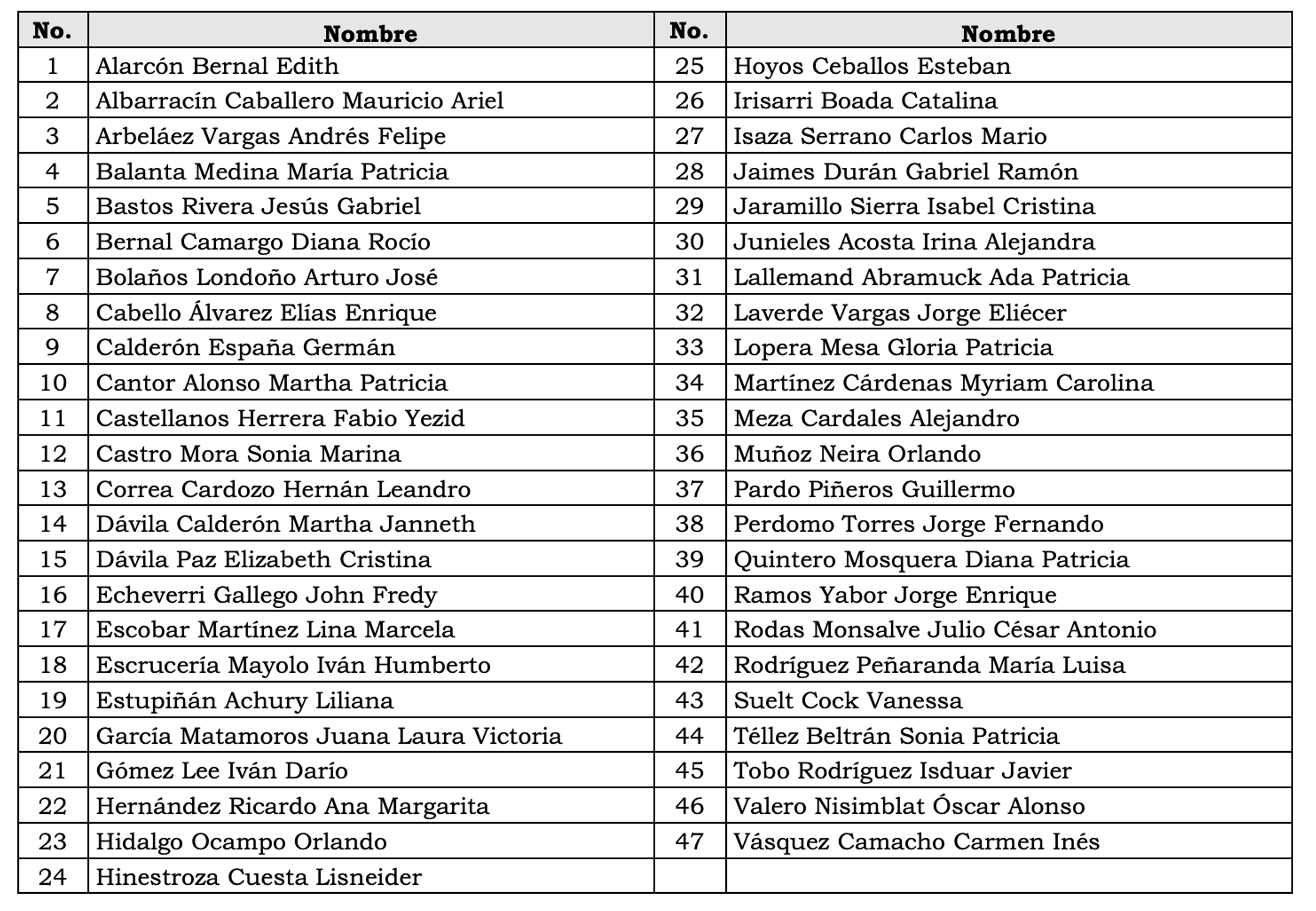 Bogotá, D.C., miércoles 2 de abril de 2025. En el marco de la Convocatoria Pública 01 de 2025 para conformar la terna de la que el Senado de la República elegirá al nuevo (a) magistrado (a) de la Corte Constitucional, fueron admitidas 47 personas de una lista de 89 que se inscribieron inicialmente.