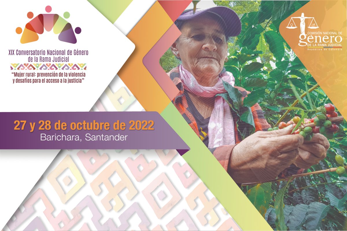Bogotá, D.C., jueves 27 de octubre 2022. La Comisión Nacional de Género de la Rama Judicial desarrollará este 27 y 28 de octubre su XIX Conversatorio de Nacional, cuyo centro de reflexión será “Mujer rural: prevención de la violencia y desafíos para el acceso a la justicia”.