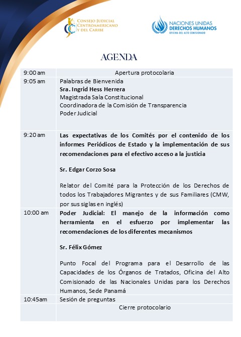 Tenemos el agrado de hacer extensiva la invitación formulada por la Presidencia Pro Tempore del Consejo Judicial Centroamericano y del Caribe (CJCC) y la Oficina del Alto Comisionado de las Naciones Unidas para los Derechos Humanos (OACNUDH) a la Conferencia virtual titulada: “El rol de los Poderes Judiciales en la implementación de las recomendaciones derivadas de los Instrumentos Jurídicos Internacionales suscritos por los Estados”