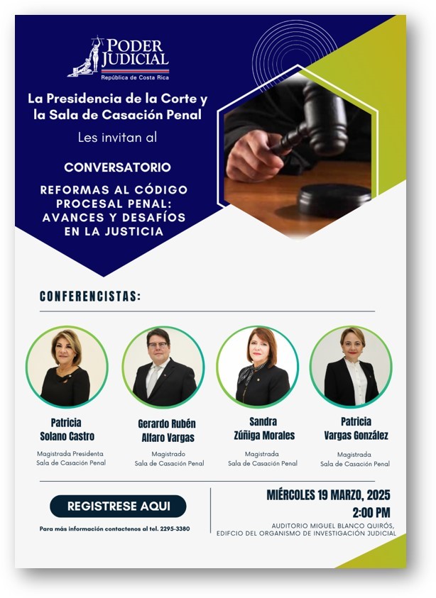 Nos complace extenderles, en nombre del Poder Judicial de Costa Rica, una atenta invitación para participar, en modalidad virtual (Microsoft Teams), en la II Parte del Seminario “Bienes Culturales Inmateriales: Marco legal y aplicación judicial”, que se llevará a cabo el próximo 5 de noviembre de 2025, a partir de las 8:00 a.m. (hora de Costa Rica).