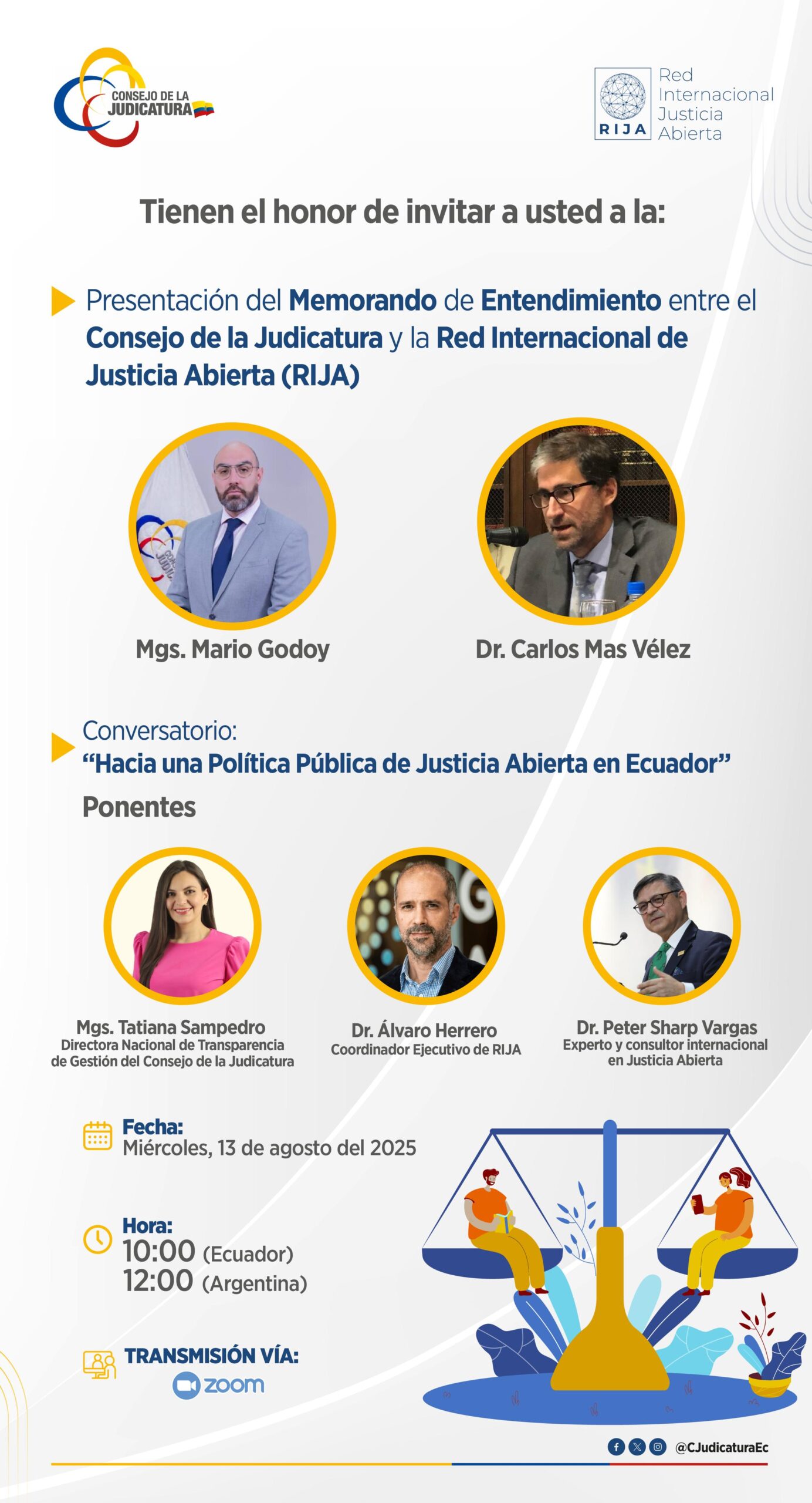 Igualmente, con el objetivo de ampliar al máximo la convocatoria, se les agradece transmitir la información al mayor número de Juezas, Jueces, Magistradas, Magistrados y demás Operadores y Servidores Judiciales, que fuera posible.