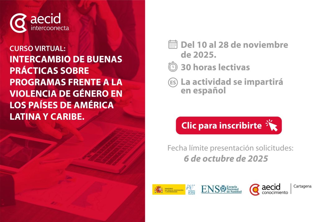 En esta ocasión les extendemos la más cordial invitación por parte del ISCIII – Instituto de Salud Carlos III (España) y la AECID a través de su Centro de Formación en Cartagena de Indias, Colombia, quienes organizan el seminario virtual “Metodología de Investigación con perspectiva de género en Violencia de Género”.