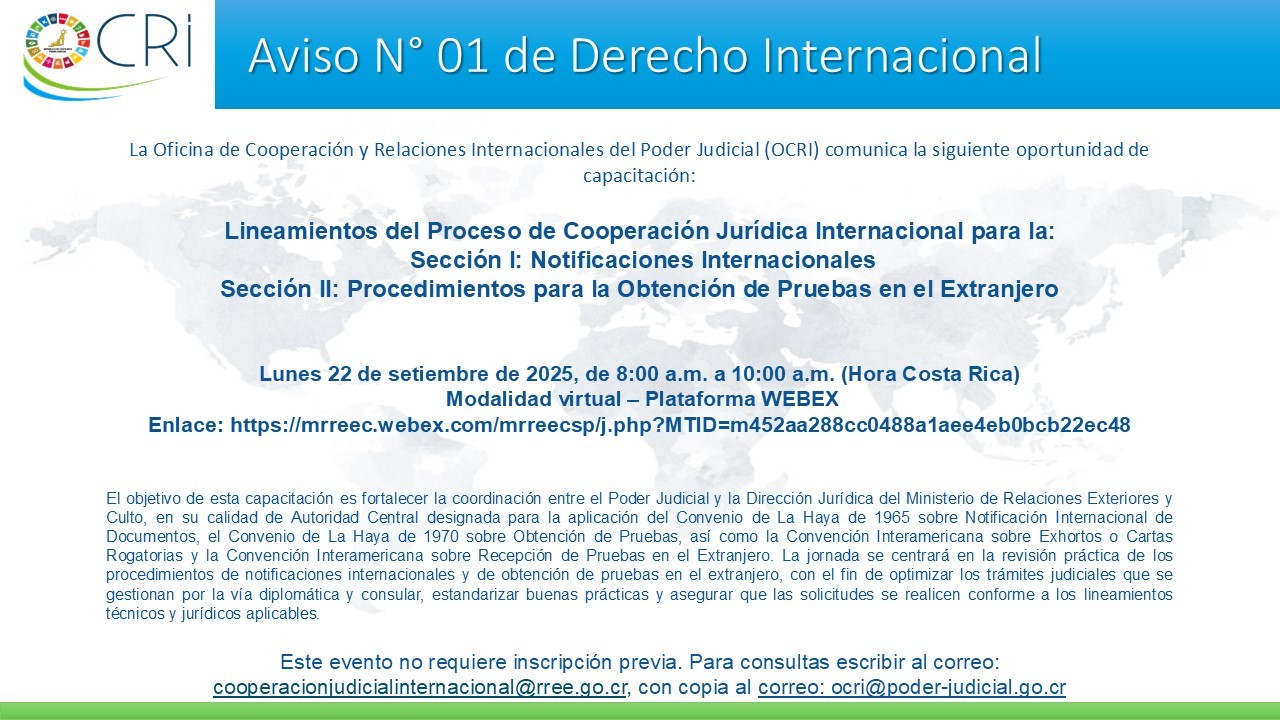 La Oficina de Cooperación y Relaciones Internacionales (OCRI) del Poder Judicial, les invita al Panel: Experiencias en el seguimiento y rendición de cuentas de Convenciones en el marco del Sistema de interamericano de promoción y protección de los derechos humanos