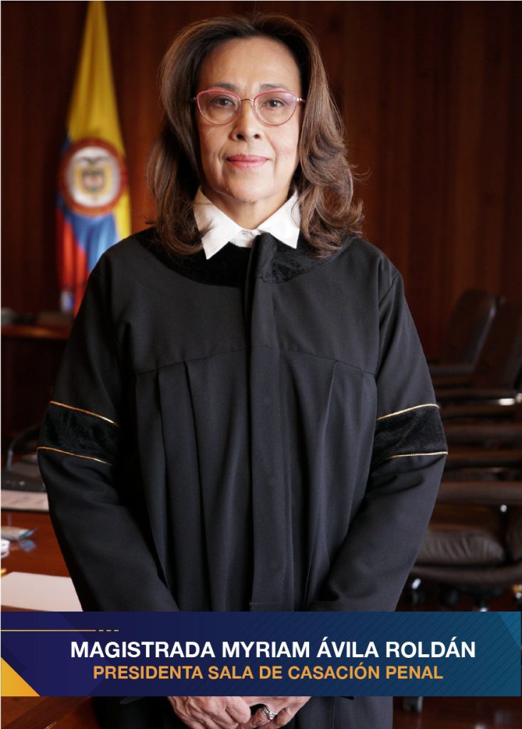 La magistrada Myriam Ávila Roldán es abogada especialista en Derecho Penal de la Universidad Nacional de Colombia y doctora en Derecho de la Universidad Externado de Colombia.