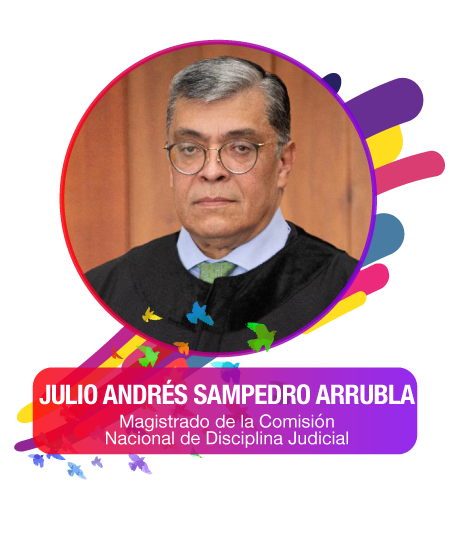 Julio Andrés Sampedro Arrubla, es abogado de la Pontificia Universidad Javeriana y doctor en derecho de las universidades Rosario, Javeriana y Externado de Colombia. Es autor de distintas publicaciones académicas como “La rehumanizacion del proceso penal: una propuesta desde las víctimas y La justicia restaurativa”. Fue Decano de la Facultad de Ciencias Jurídicas de la Universidad Javeriana y profesor invitado en la Universidad de Salamanca, de la Universidad del país Vasco en España y de la Universidad de Bayreuth en Alemania. Actualmente, es Magistrado de la Comisión Nacional de Disciplina Judicial.