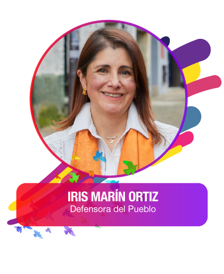 La doctora Iris Marín Ortiz es la primera mujer en dirigir la Defensoría del Pueblo en sus 35 años de existencia. Abogada constitucionalista de la Universidad del Rosario y magíster en Derecho de la Universidad Nacional, cuenta con más de 25 años de experiencia en derechos humanos, justicia transicional y construcción de paz. Ha trabajado en la Corte Constitucional, la Jurisdicción Especial para la Paz, la Comisión de la Verdad y la Unidad para las Víctimas, liderando la implementación de la Ley 1448 y el diseño de políticas de reparación integral.