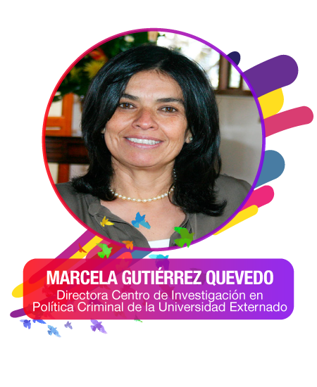 La doctora Marcela Gutiérrez Quevedo es Directora del Centro de Investigación en Política Criminal, Chairholder de la Cátedra UNESCO y profesora de la Cátedra de Criminología de la Universidad Externado de Colombia. Abogada de la misma universidad, con posgrados en Derecho Penal, Política Criminal y Derechos Humanos en la Universidad de Paris II y Paris X, respectivamente. Doctora en Derecho Público de la Universidad d’Artois, Francia.