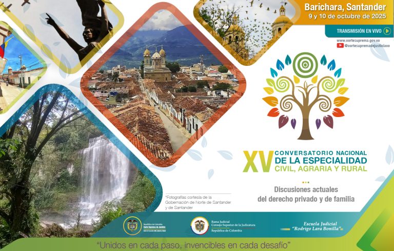 Bogotá D. C., miércoles 10 de septiembre de 2025. La Sala de Casación Civil, Agraria y Rural de la Corte Suprema de Justicia realizará el XV Conversatorio Nacional de la Especialidad Civil, Agraria y Rural los días 9 y 10 de octubre en Barichara, Santander. Será un escenario académico para analizar los retos actuales del derecho privado y de familia, con la participación de jueces, magistrados, académicos y expertos nacionales e internacionales.