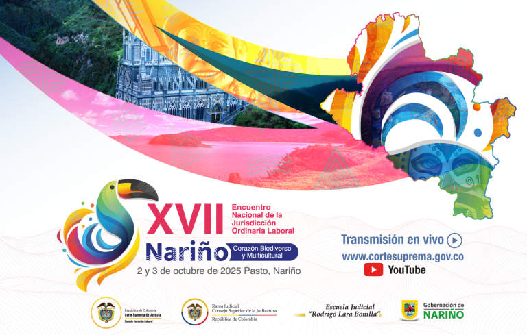 Bogotá D. C., , martes 22 de septiembre de 2025. La Sala de Casación Laboral de la Corte Suprema de Justicia realizará el XVII Encuentro Nacional de la Jurisdicción Ordinaria Laboral, que tendrá lugar los días 2 y 3 de octubre de 2025 en la ciudad de Pasto, Nariño.